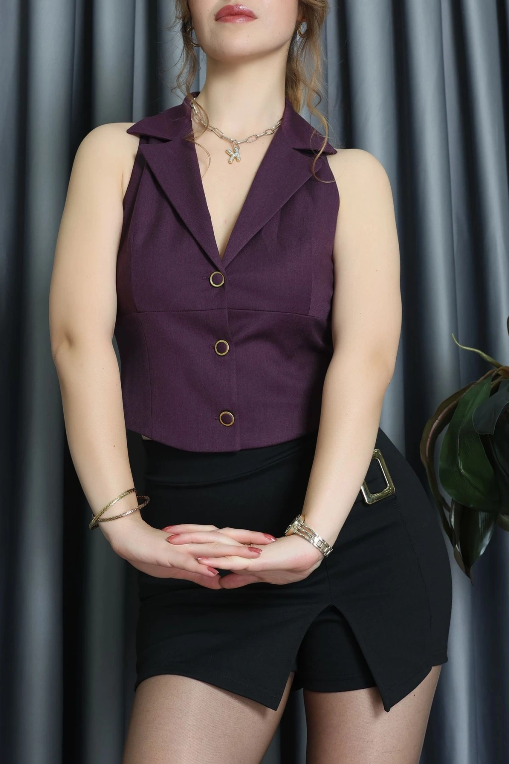 Lefon Kruvaze Kesim Dabıl Yelek Mürdüm - 120693.444.