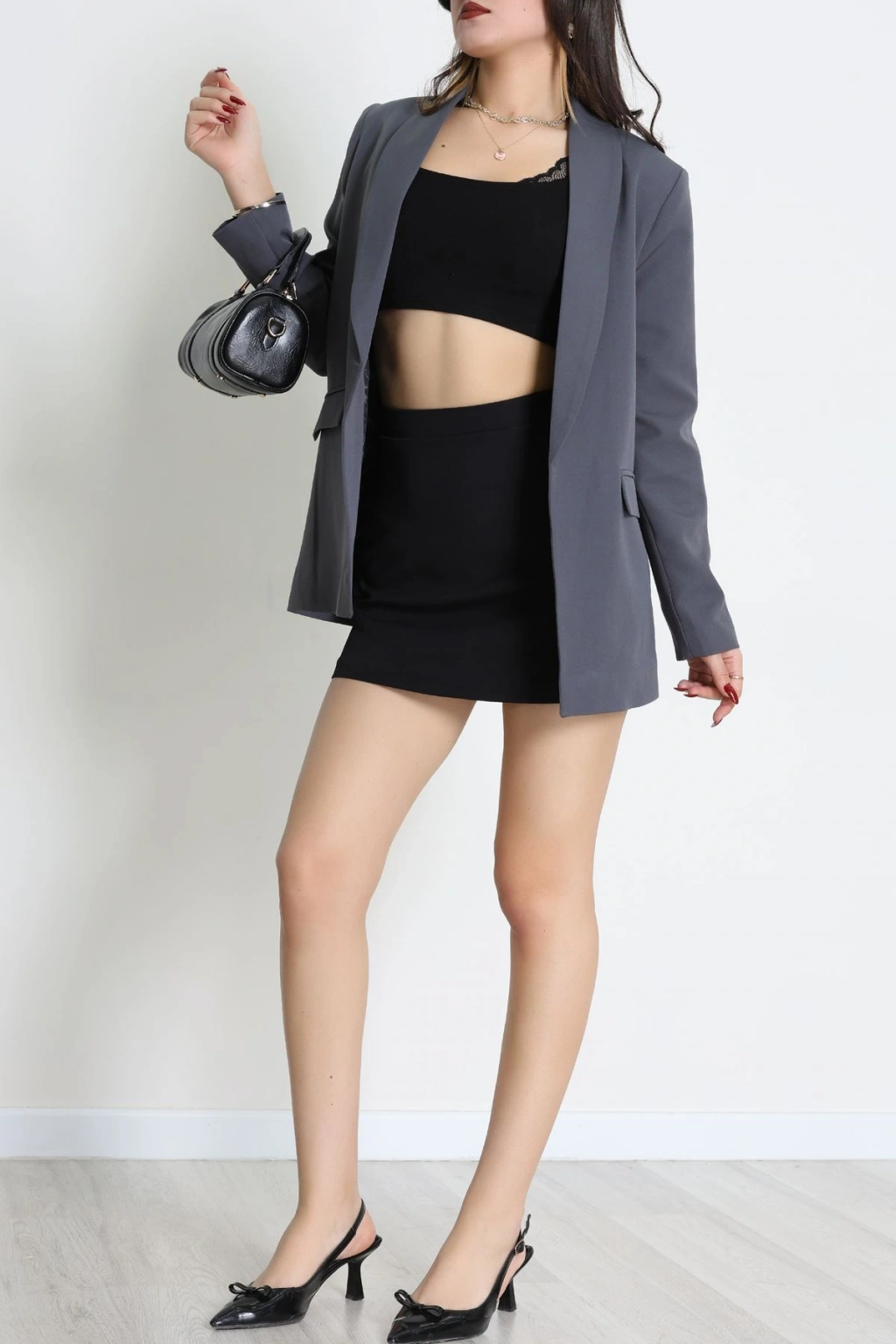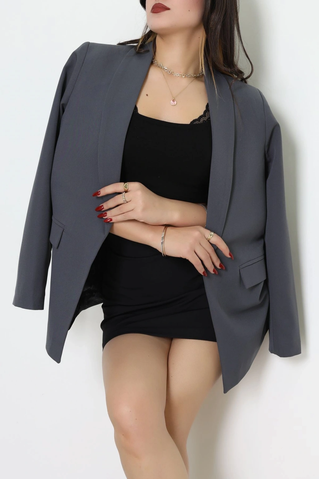 Leopar Astarlı Blazer Ceket Antrasit - 51500.1355.