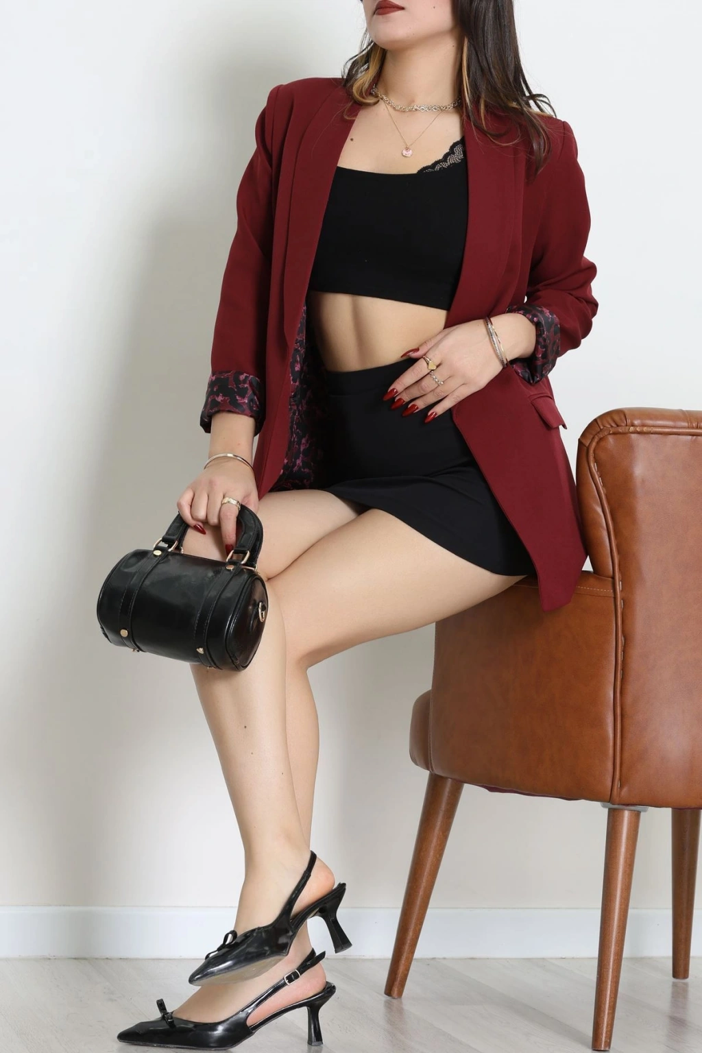 # Bordo Leopar Astarlı Blazer Ceket ## Dabıl Kumaş ve Şık Tasarım Özellikleri Bordo rengin derinliğini yansıtan bu **blazer ceket**, dabıl kumaş yapısı sayesinde formunu uzun süre koruyan dayanıklı bir yapı sunar. Modelimiz, pamuk içeriğiyle cildinizin nefes almasını sağlarken dokusundaki esneklik sayesinde hareket özgürlüğünüzü kısıtlamaz. **Bordo blazer ceket arayanlar için** tasarlanan bu parça, keskin hatları ve tok duruşuyla profesyonel bir dış görünüş çizer. Gövdeyi dengeli bir şekilde saran normal kalıbı, gün boyu konforlu hissetmenize yardımcı olur. Tasarımın iç kısmında yer alan **leopar desenli astar** detayı, kollar kıvrıldığında ortaya çıkan estetik bir kontrast kazandırır. Pamuklu ve likralı dokusu, bu **bordo ceket** modelinin vücut hatlarına uyum sağlamasına ve kullanım sırasında oluşabilecek kırışıklıklara karşı direnç göstermesine olanak tanır. Klasik yaka kesimi ve kapaklı cep detayları ürünün modern yapısını desteklerken blazer ceket yapısı uzun ömürlü kullanım sunar. Malzeme kalitesiyle öne çıkan bu tasarım, ekonomik bir seçenektir. Satın almak için sepete ekleyin.