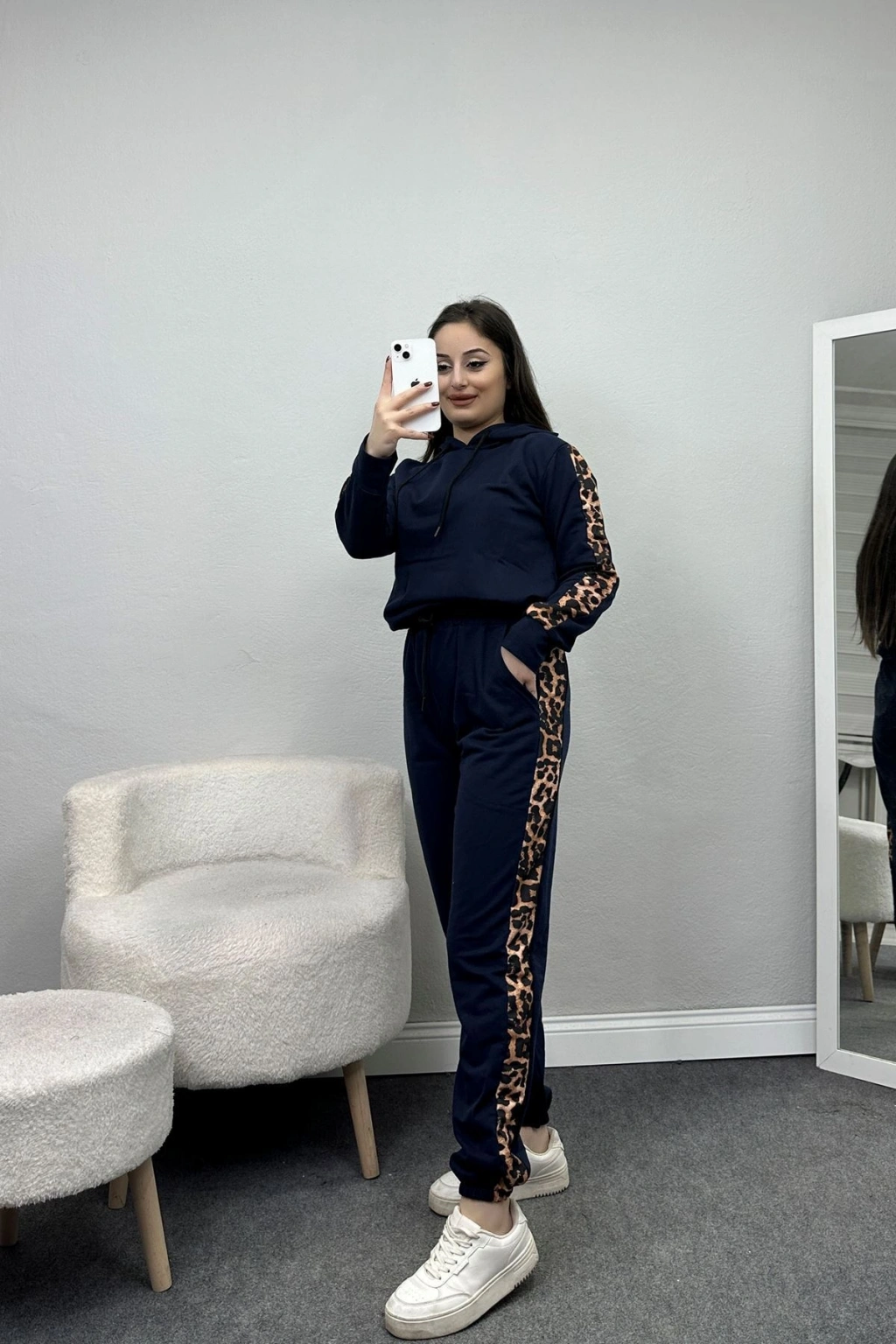 # Leopar Garnili Eşofman Takımı ## Konfor ve Şıklığı Bir Arada Gün boyu konfor ve stil sunan **leopar garnili eşofman takımımız** ile rahatlığın keyfini çıkarın. Lacivert rengi, spor şıklığı modern bir dokunuşla birleştirir. Yüzde yüz pamuklu yapısıyla cildinize nefes aldıran bu model, esnek kumaş özelliği sayesinde hareket özgürlüğünüzü kısıtlamaz. Günlük kullanım için ideal olan bu tasarım, rahat giyim arayanlar için harika bir seçenektir. Bu şık eşofman takımı, kollarındaki ve paçalarındaki leopar desenli garnilerle dinamik bir görünüm kazanır. Kaliteli worteks kumaşı sayesinde uzun süreli kullanıma uygun olan bu lacivert eşofman takımı, her anınızda size eşlik eder. **Esnek kumaş** dokusu gün boyu rahatlık sağlarken, fiyat performans ürünü olmasıyla da bütçenize dost bir alternatif sunar. Türkiye'de üretilen bu **pamuklu eşofman**, kalitesiyle beklentilerinizi karşılar. Hemen sepete ekleyin.
