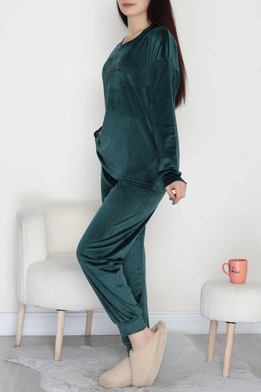 Likralı Fransız Kadife Pijama Takımı Zümrüt - 42068.1049.