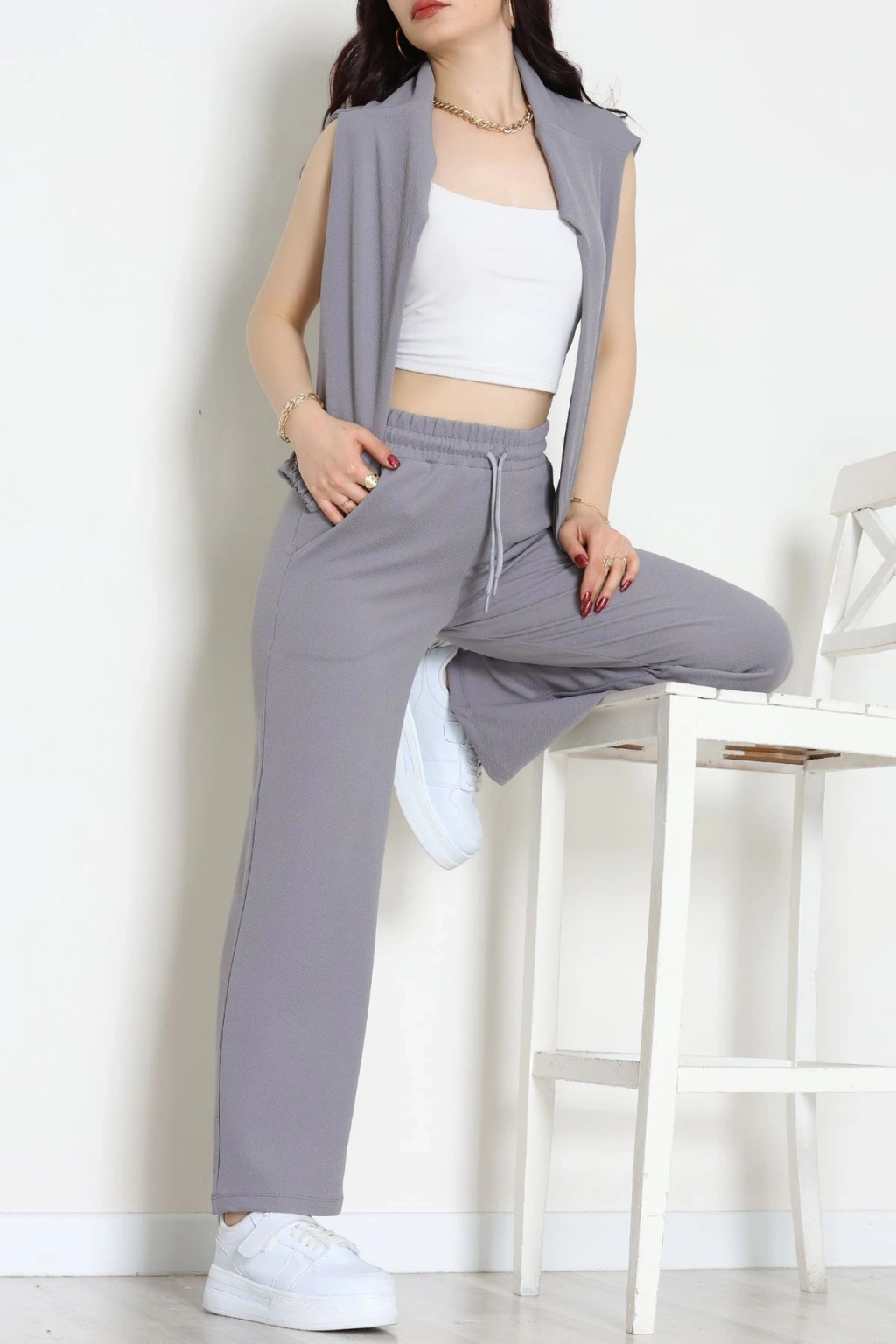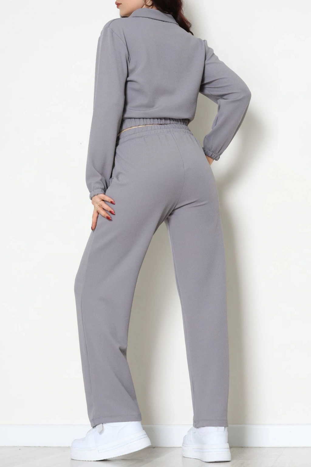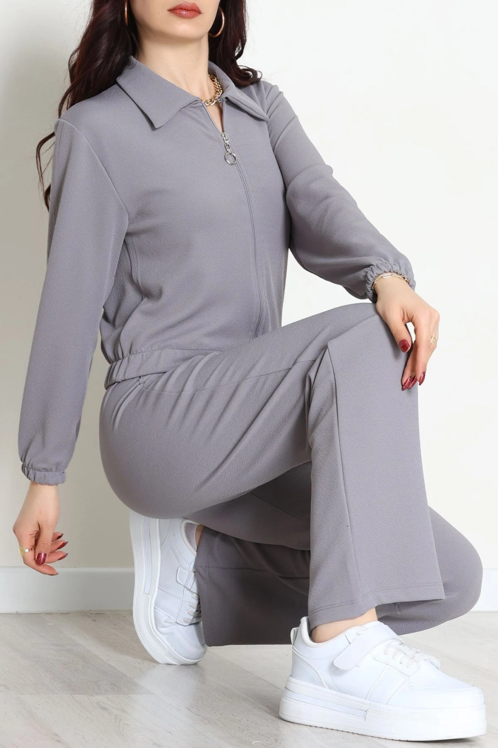 Likralı İthal Krep İkili Takım Gri - 42070.1567.