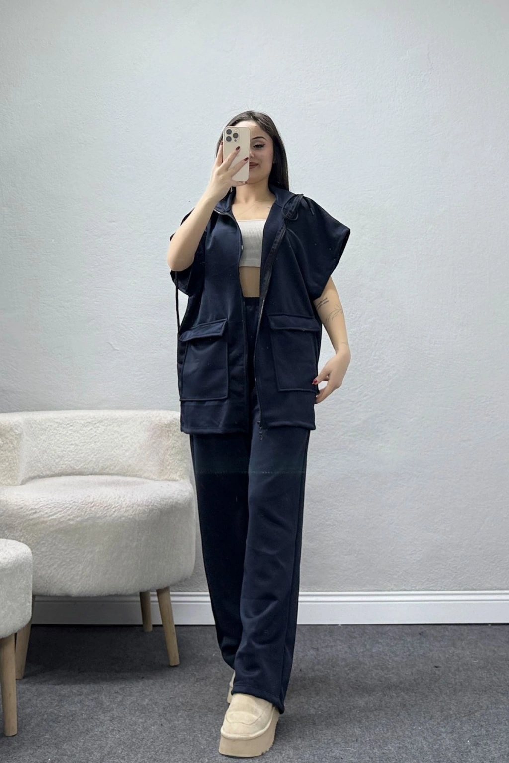 # Rahat ve Şık Modal Fermuarlı Takım ## Günlük Şıklığın Yeni Adresi Gündelik şıklığı konforla buluşturan **Modal Fermuarlı Yelek Takım**, modern kadının stilini tamamlamak için tasarlandı. Modal kumaşının eşsiz yumuşaklığı ve nefes alabilen yapısıyla gün boyu rahatlık sunan bu tasarım, lacivert rengiyle de asil bir duruş sergiliyor. Özellikle rahatına düşkün ama stilinden ödün vermek istemeyenler için ideal. **Kadın eşofman takımı** kategorisinde öne çıkan bu Modal yelek takım, oversize kalıbı sayesinde hareket özgürlüğü sunarken, bol paça pantolonu ile de modern bir siluet oluşturur. Modelin fermuarlı yelek kısmı, fonksiyonel cepleriyle pratik kullanım vadederken, kumaşın hafif dokusu cildinizde nazik bir his bırakır. Bu **lacivert takım**, kalitesi ve şık duruşuyla fiyat performans dengesini en iyi şekilde sunan bir seçenektir. Hemen sepete ekleyin.
