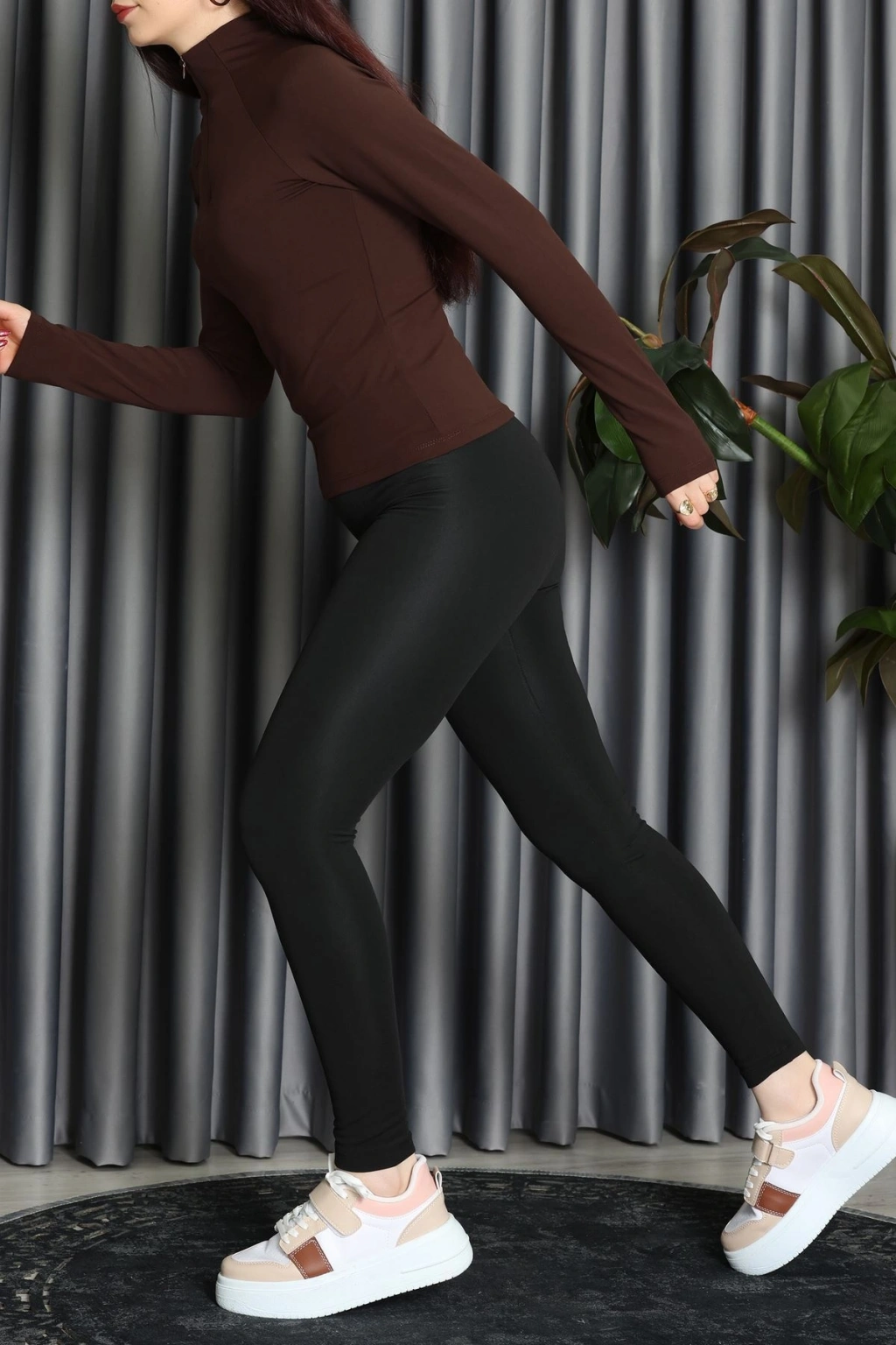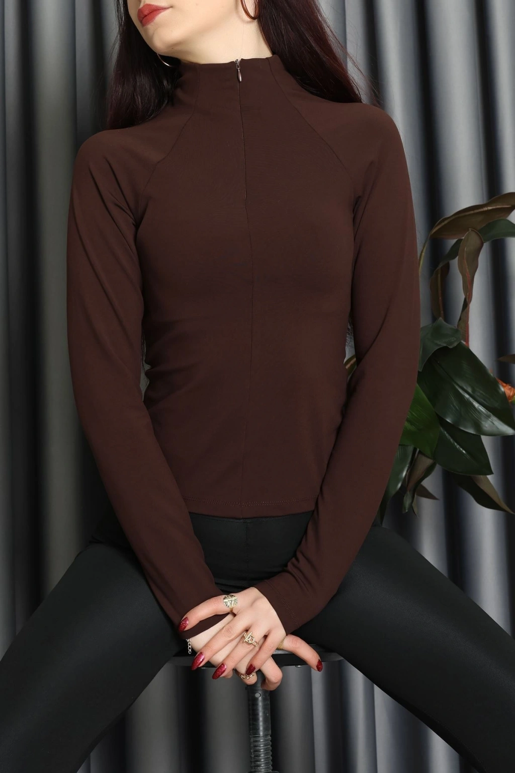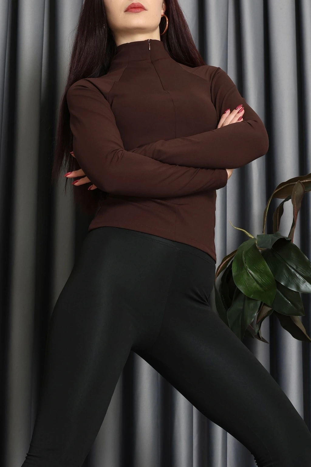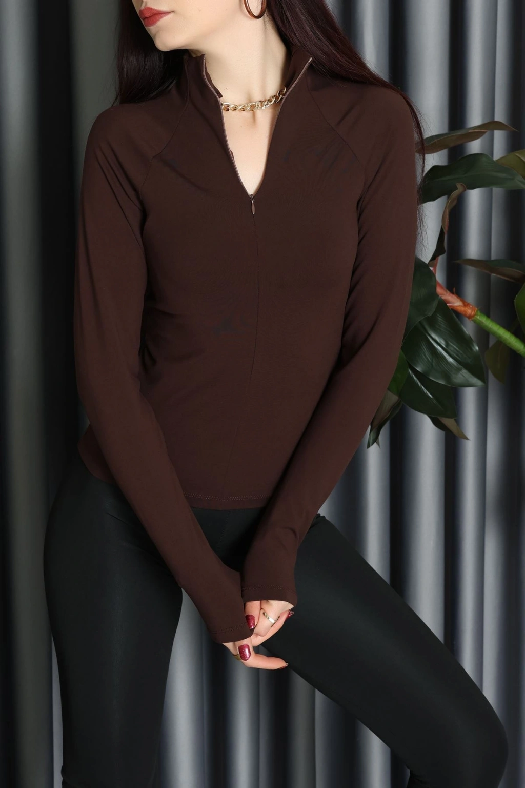 Modal Kumaş Fermuarlı Bluz Kahve - 71792.444.