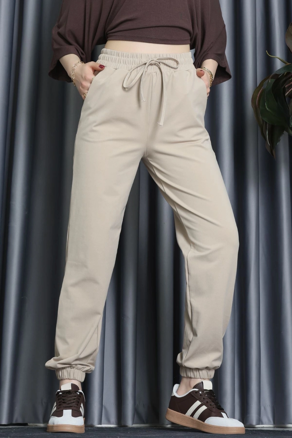 Modal Kumaş Jogger Pantolon Bej - 31591.444.