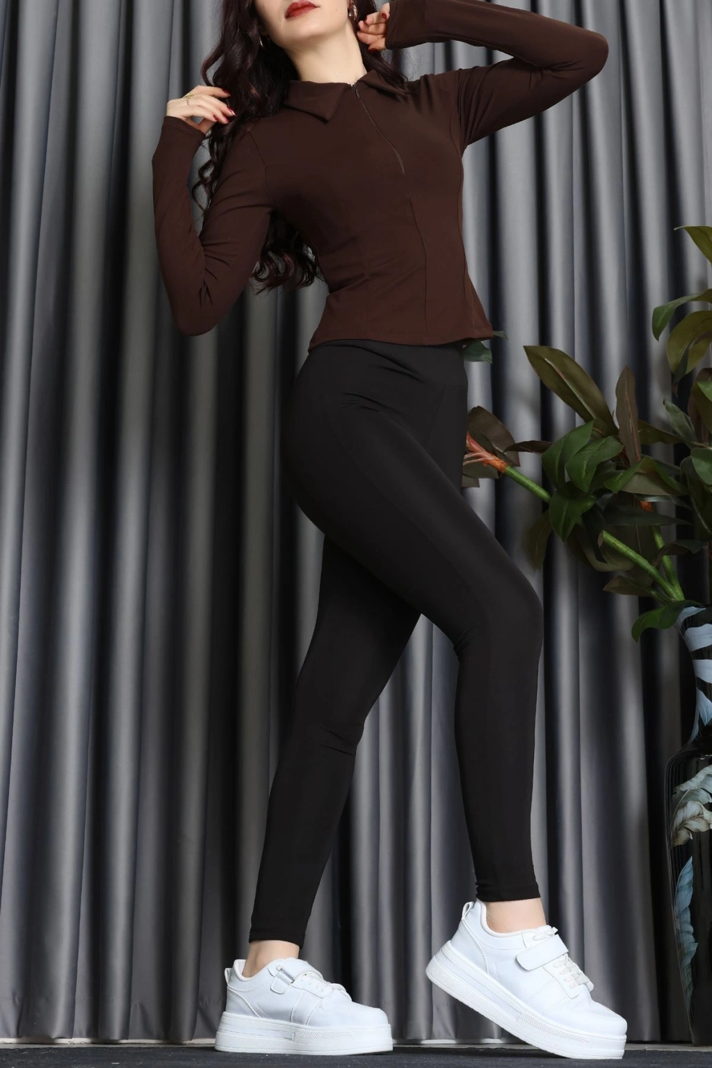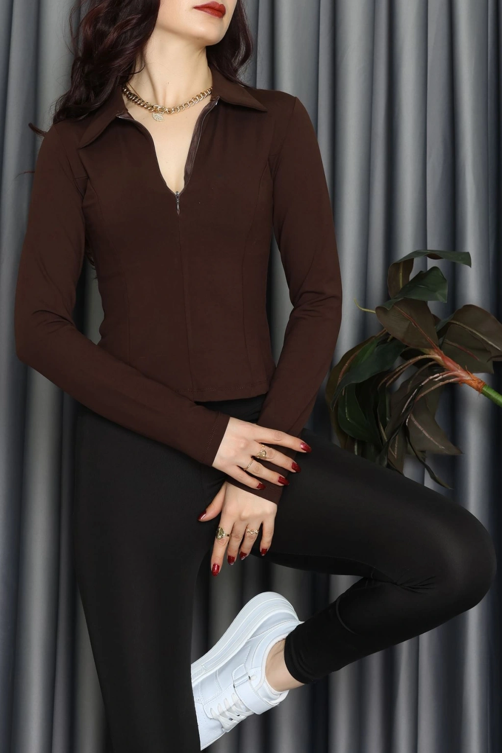 Modal Kumaş Polo Yaka Bluz Kahve - 71793.444.