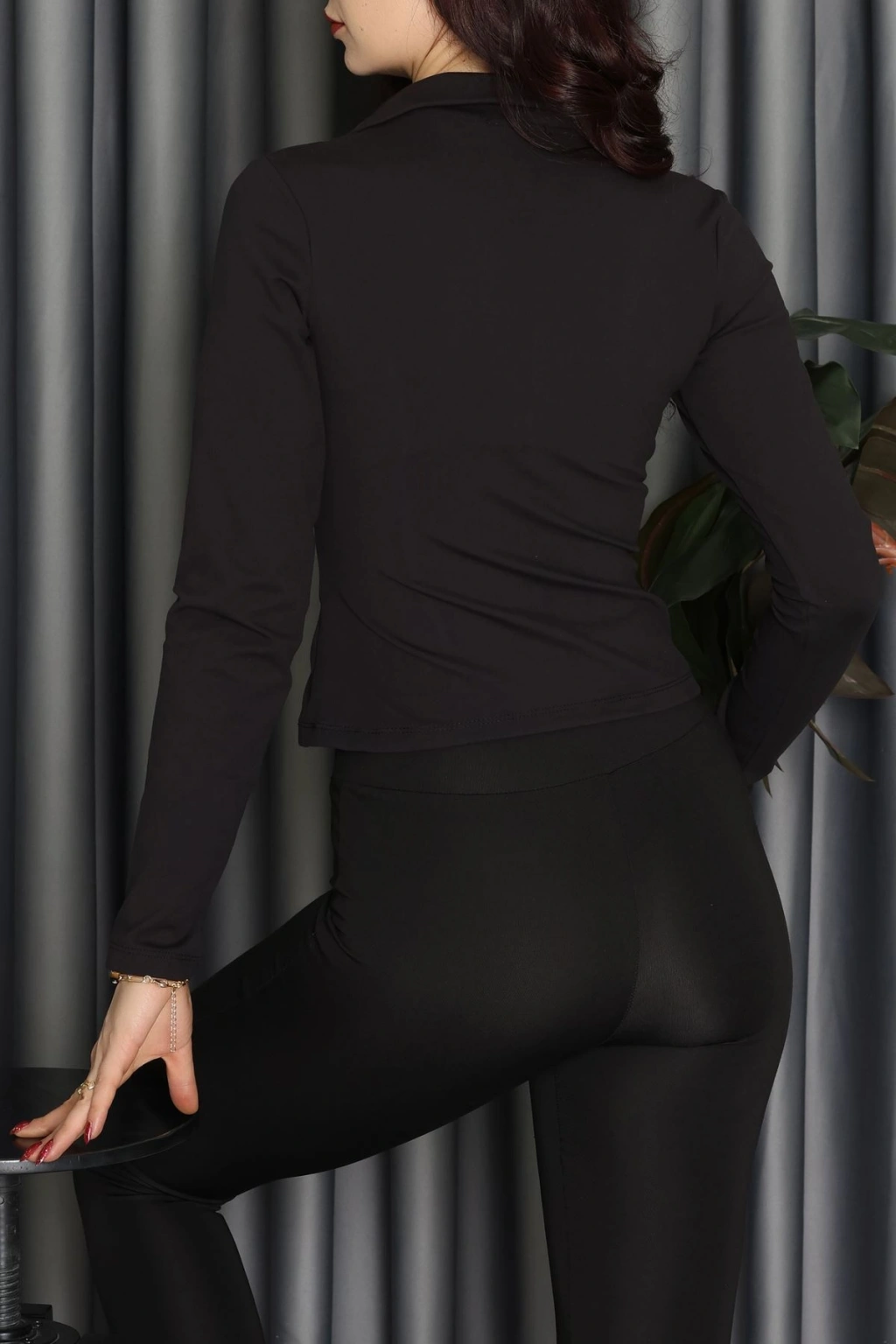 Modal Kumaş Polo Yaka Bluz Siyah - 71793.444.