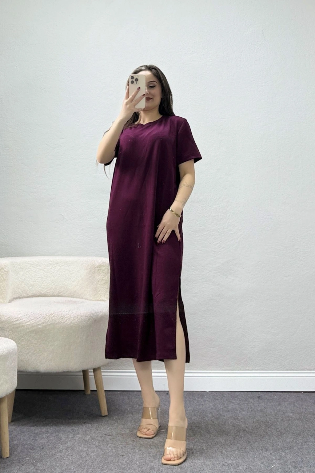 # Modal Kumaş Yırtmaçlı Elbise ## Konforlu Doku ve Mürdüm Rengi Şıklığı Bu **modal kumaş yırtmaçlı elbise**, yumuşak dokusu ve mürdüm tonuyla konforu ön planda tutan bir kullanım deneyimi sağlar. Modal ve polyester karışımından elde edilen kumaş, cilde nefes aldıran yapısıyla serin tutarken zarif bir duruş sergiler. Tasarımın sahip olduğu **esnek modal kumaş**, hareket özgürlüğünü kısıtlamadan bedene uyum sağlayan normal bir kalıba sahiptir. Bu parça, gün boyu rahatlık arayan kadınlar için modern ve sade bir silüet yaratmaktadır. Modelimiz, yan kısımlarda bulunan derin yırtmaç detayı sayesinde dinamik ve dikkat çekici bir görünüm kazanmaktadır. Yuvarlak yakalı ve **kısa kollu elbise** kesimi, yalın tasarımını vurgularken kumaştaki likra içeriği esnekliği artırarak her adımda büyük kolaylık sağlar. Diz altında biten boyuyla bu mürdüm rengi elbise arayanlar için ideal olan tasarım, modal kumaş yırtmaçlı elbise formunu uzun süre korur. Kaliteli dokusu ve mürdüm tonuyla dikkat çeken modelimiz, fiyat performans odaklı ekonomik seçenek sunar. Satın almak için sepete ekleyin.