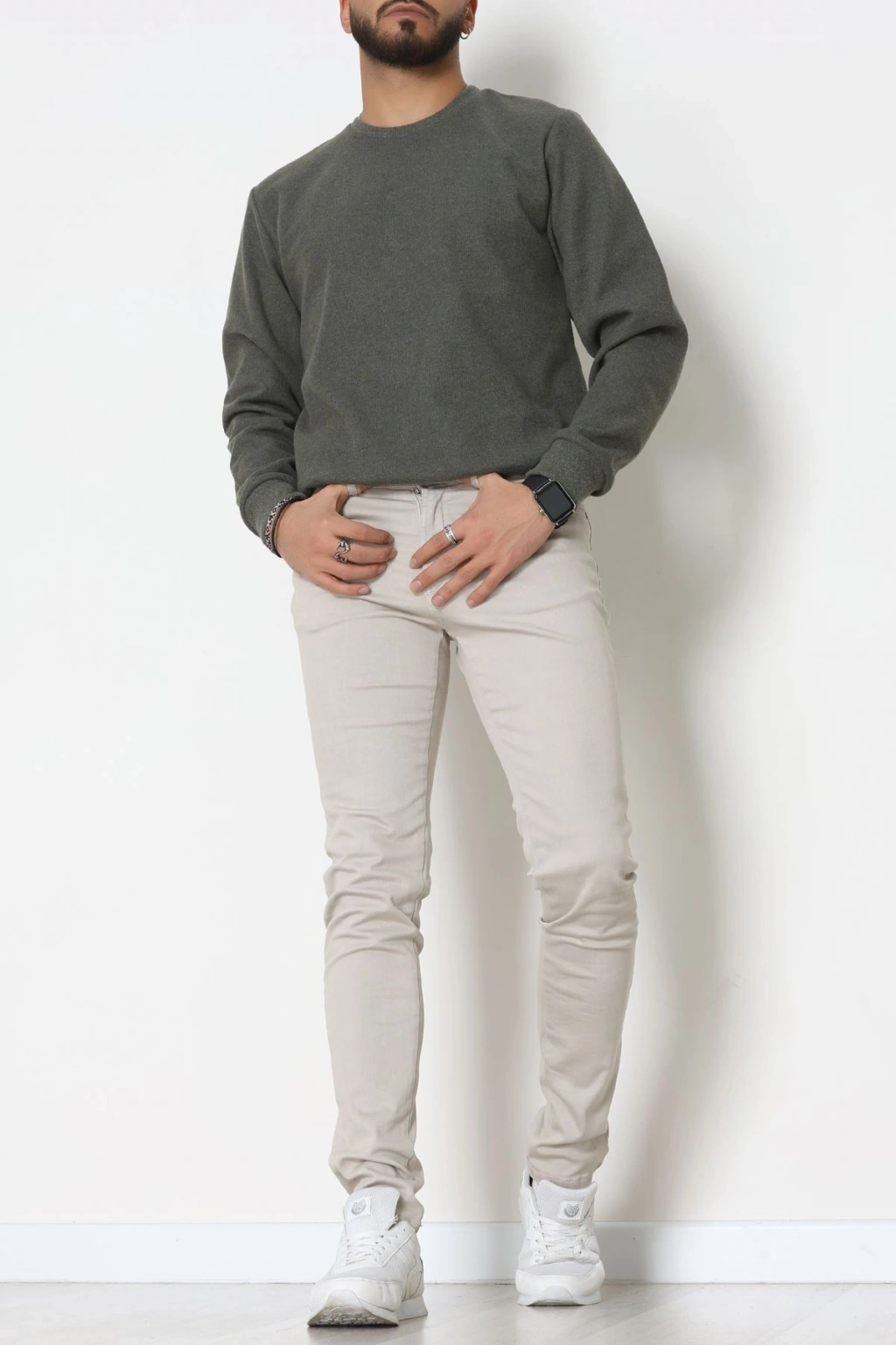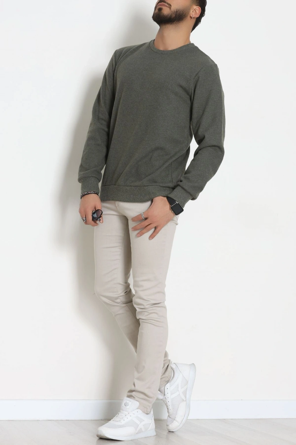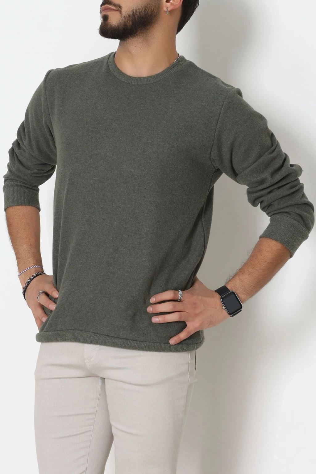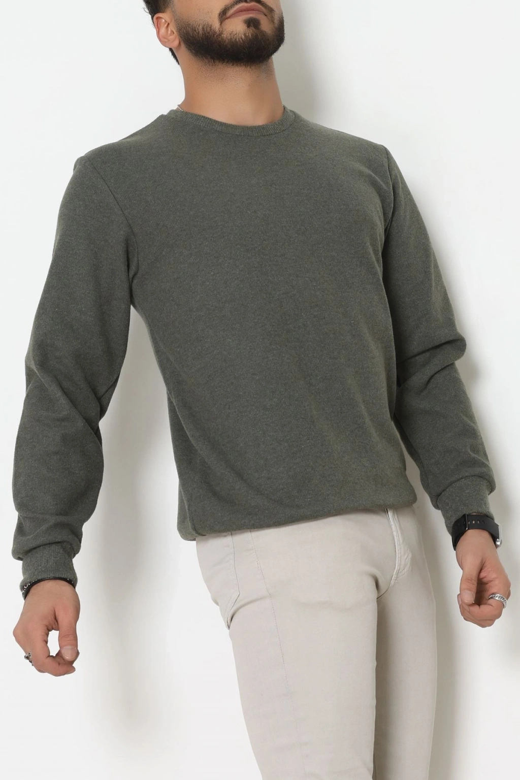 Nakış Detaylı Selanik Erkek Sweat Haki - 51256.1957.