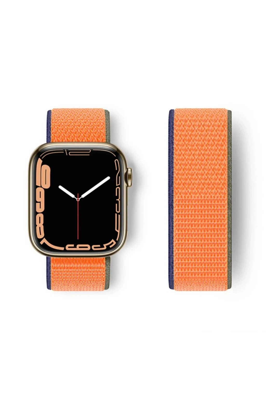 Newface Apple Watch 38mm Hasırlı Cırtcırtlı Kordon - Lacivert-Turuncu