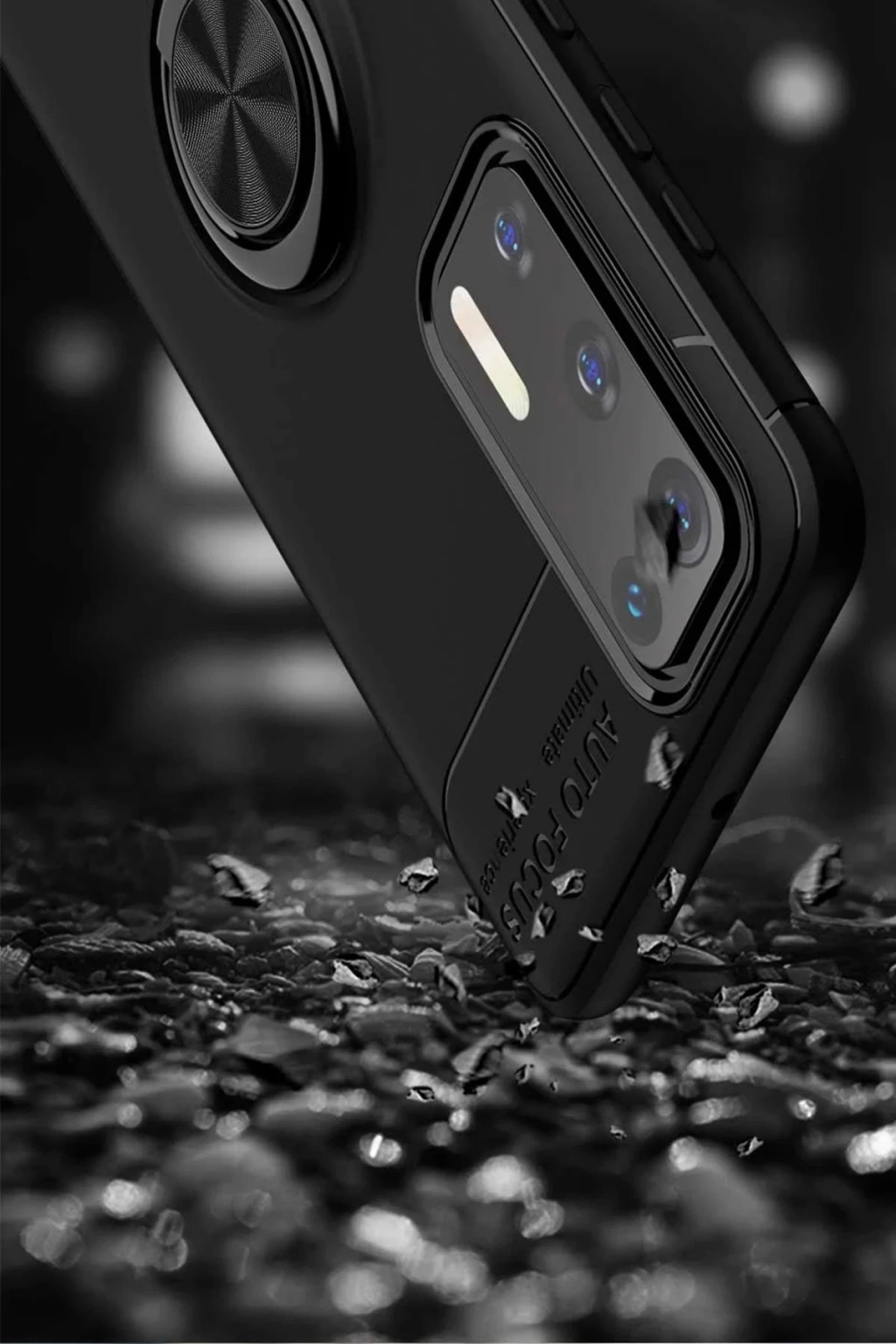 Newface Huawei P40 Kılıf Range Yüzüklü Silikon - Siyah-Kırmızı