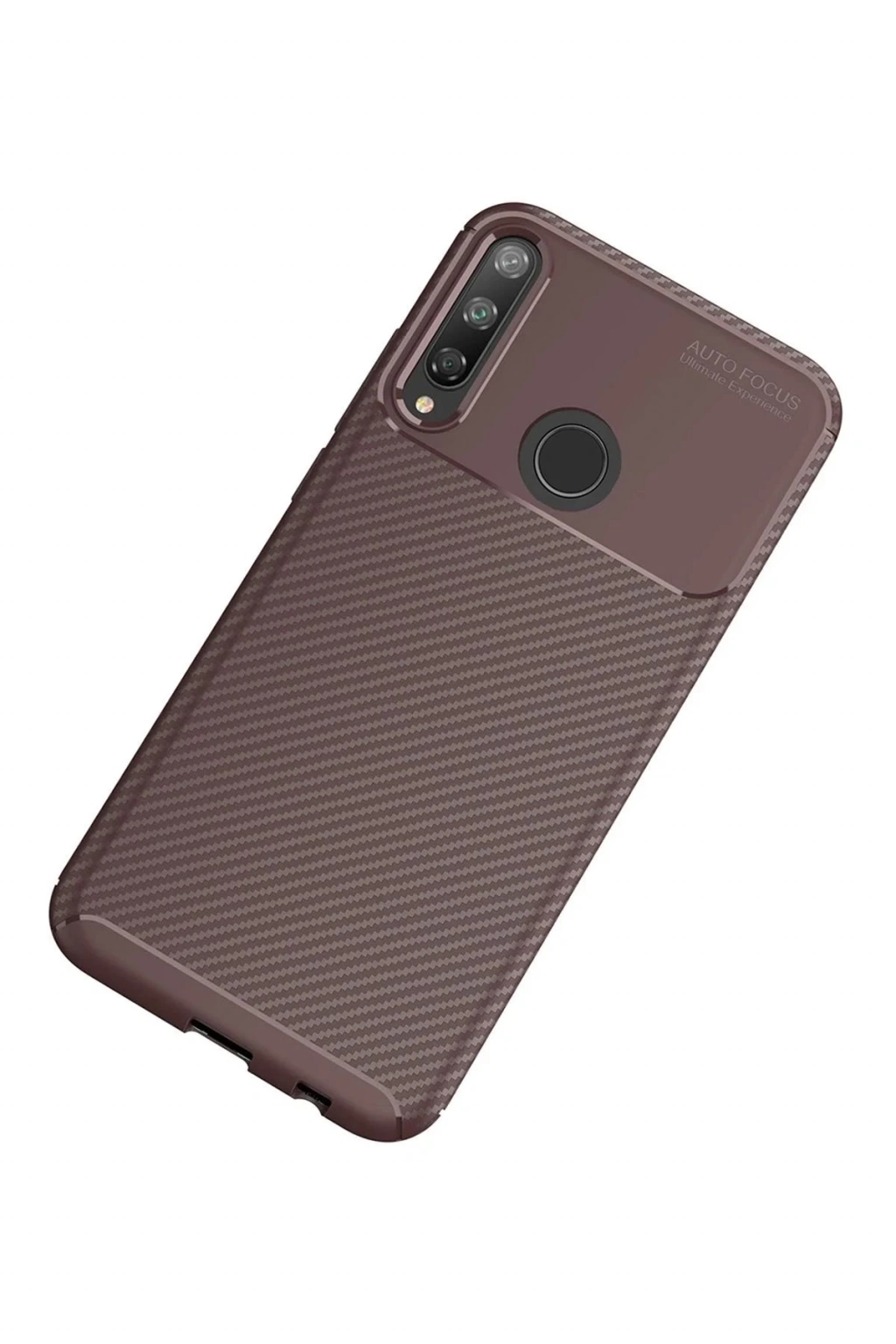 Newface Huawei P40 Lite E Kılıf Auto Focus Karbon Kapak - Kahverengi