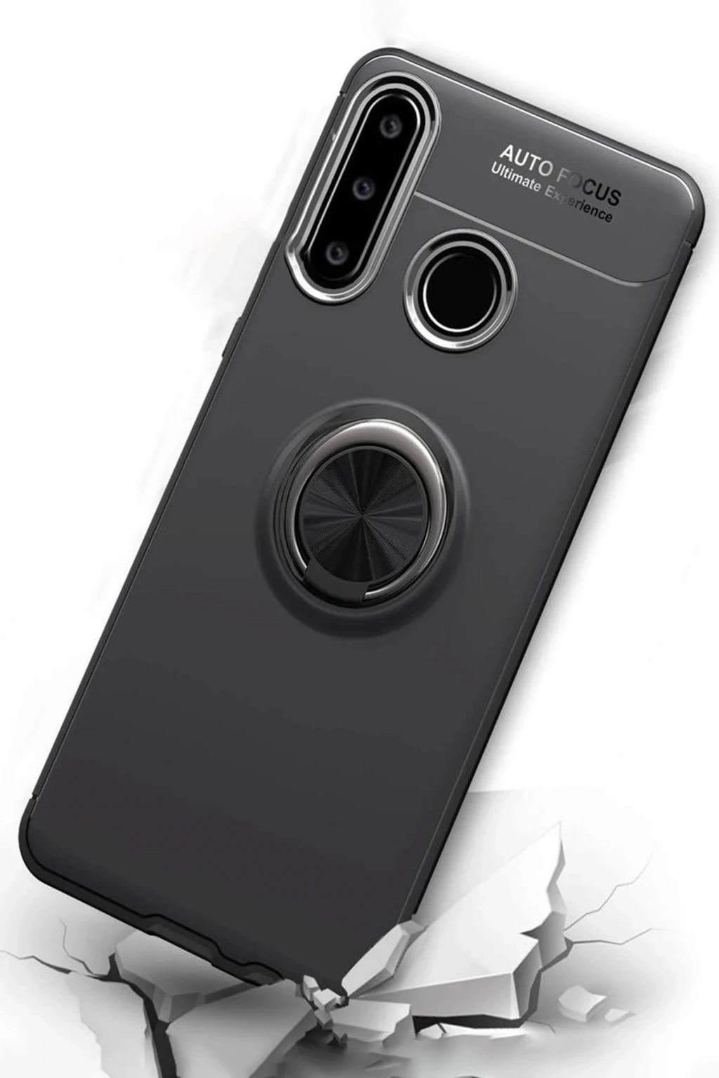 Newface Huawei Y6P Kılıf Range Yüzüklü Silikon - Siyah-Kırmızı