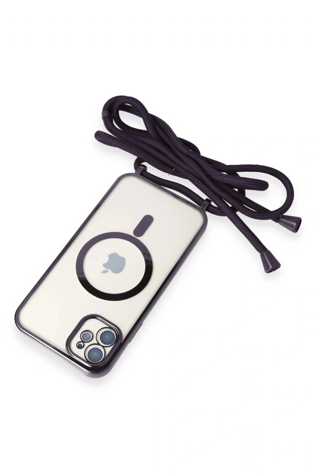 Newface iPhone 11 Kılıf Divo Lazer Askılı Magsafe Kapak - Derin Mor