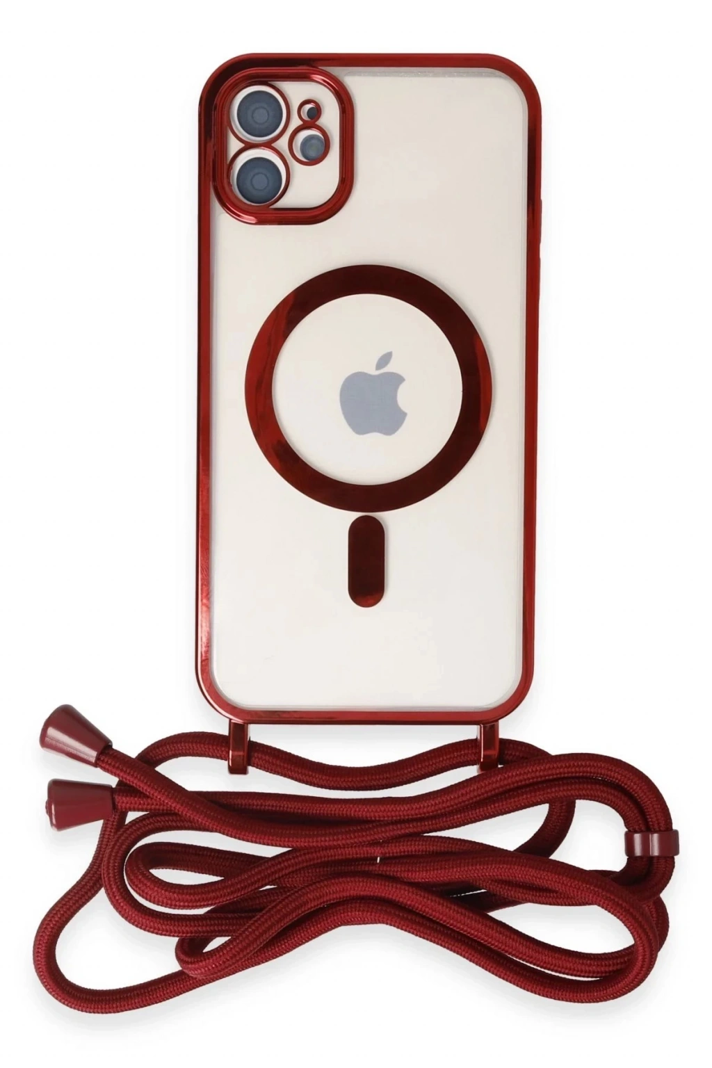 Newface iPhone 11 Kılıf Divo Lazer Askılı Magsafe Kapak - Kırmızı