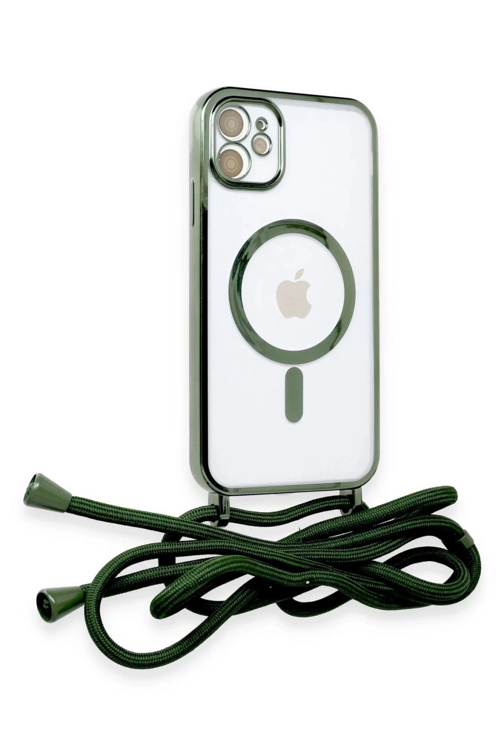 Newface iPhone 11 Kılıf Divo Lazer Askılı Magsafe Kapak - Koyu Yeşil