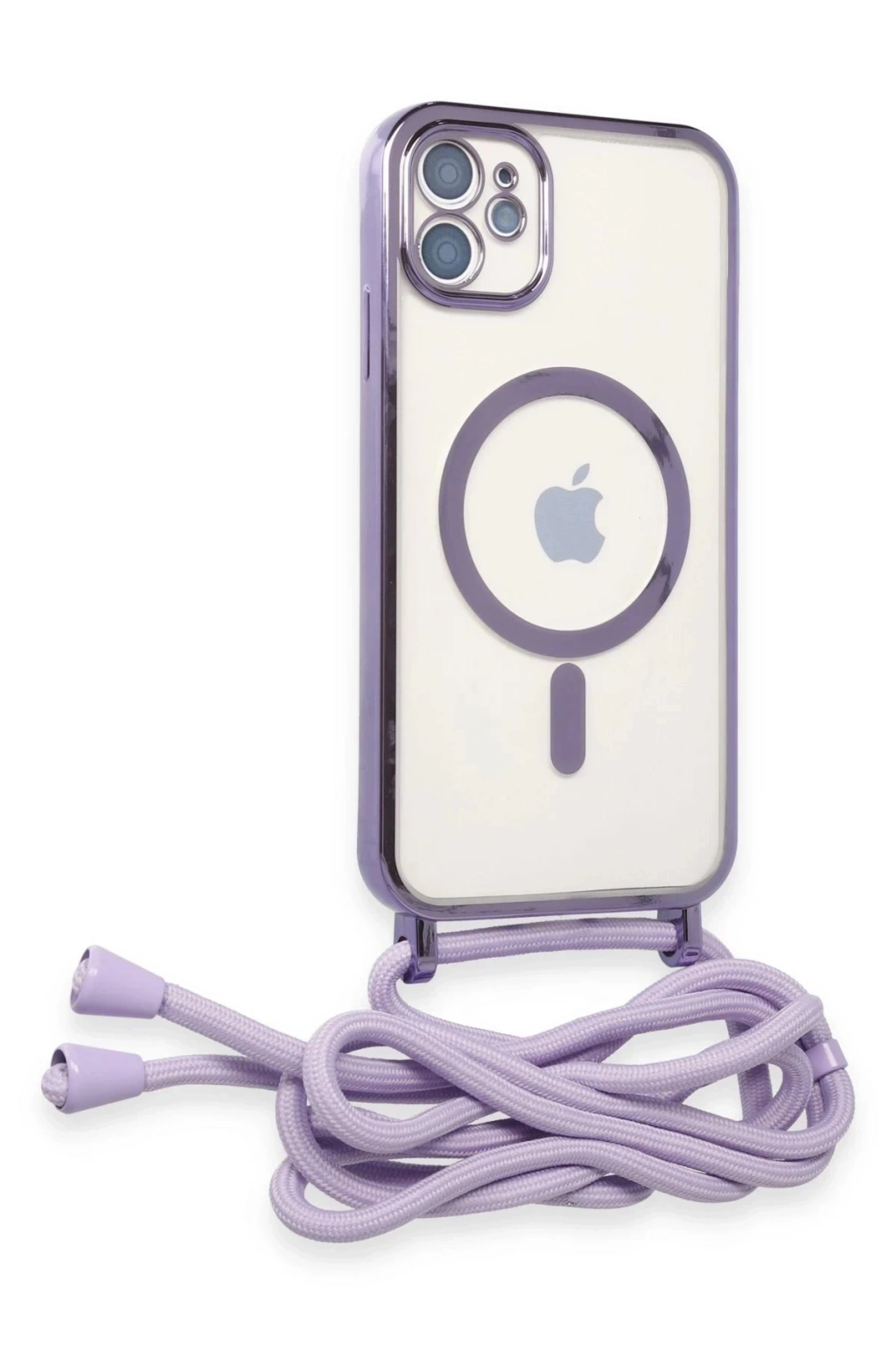 Newface iPhone 11 Kılıf Divo Lazer Askılı Magsafe Kapak - Lila