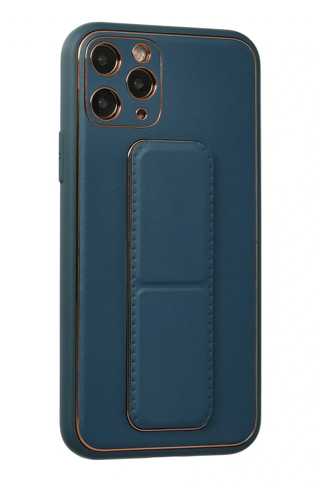 Newface iPhone 11 Pro Kılıf Coco Deri Standlı Kapak - Mavi