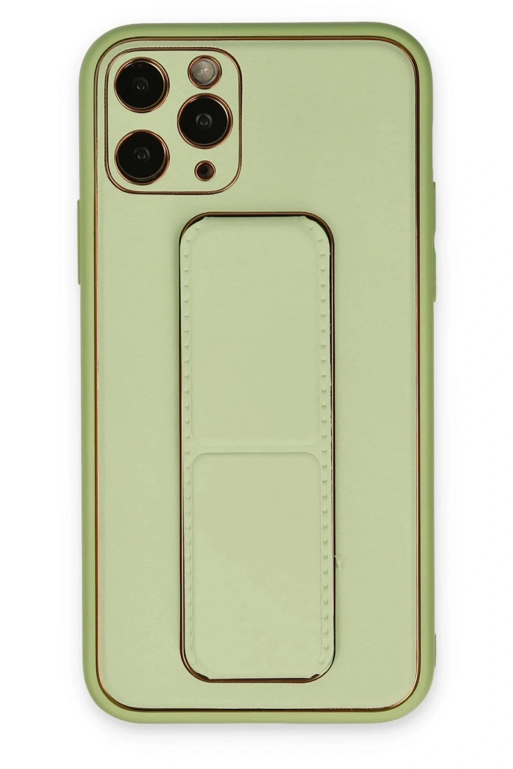 Newface iPhone 11 Pro Kılıf Coco Deri Standlı Kapak - Su Yeşili