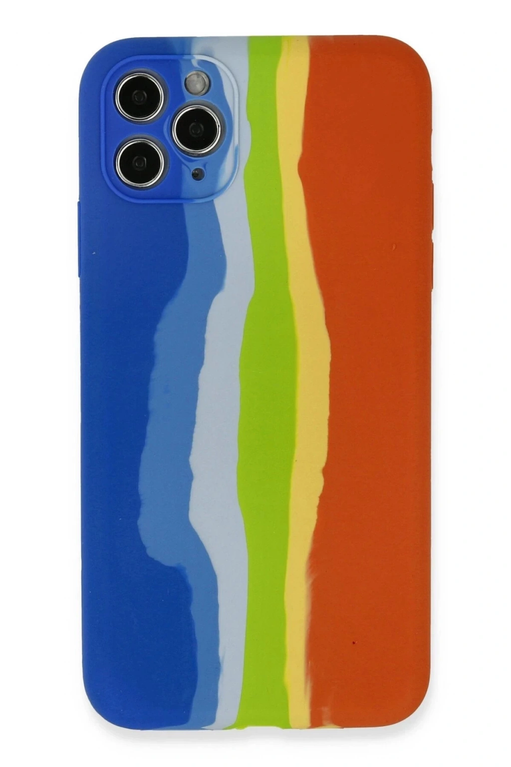 Newface iPhone 11 Pro Kılıf Ebruli Lansman Silikon - Mavi-Turuncu