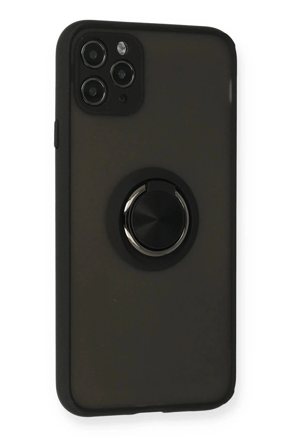 Newface iPhone 11 Pro Kılıf Montreal Yüzüklü Silikon Kapak - Siyah
