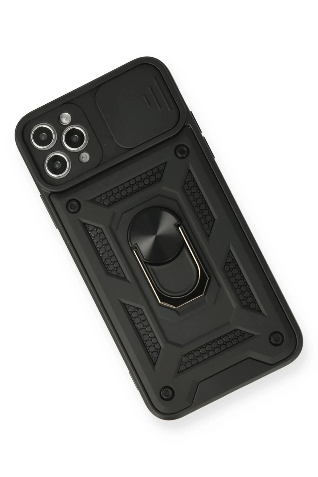 Newface iPhone 11 Pro Kılıf Pars Lens Yüzüklü Silikon - Siyah