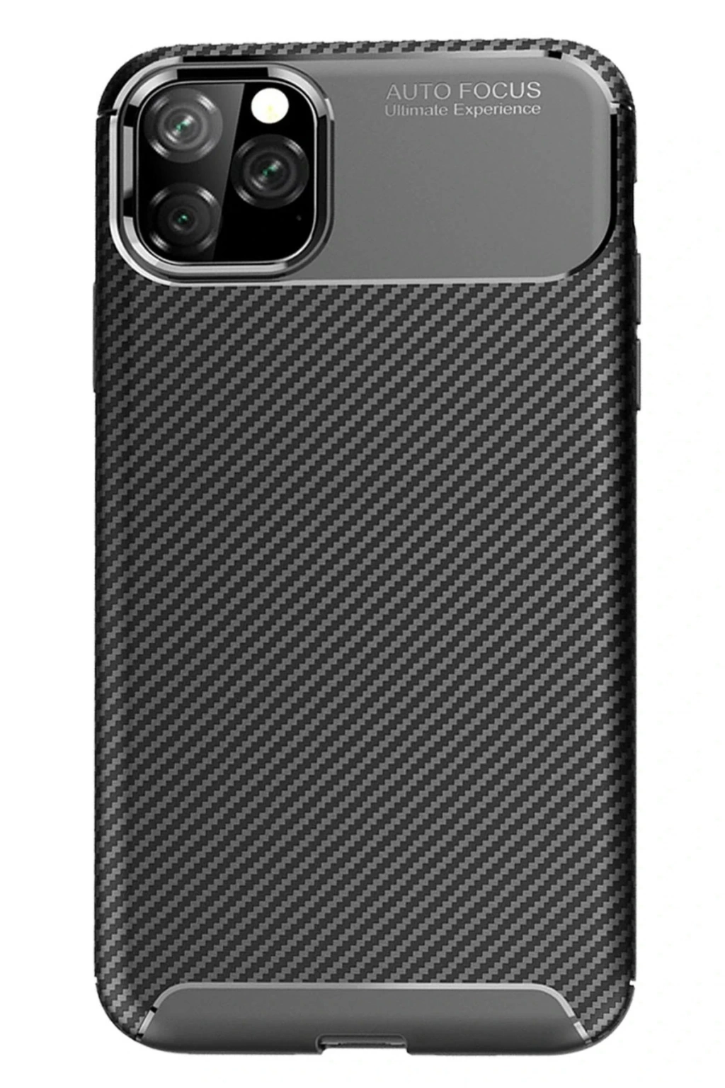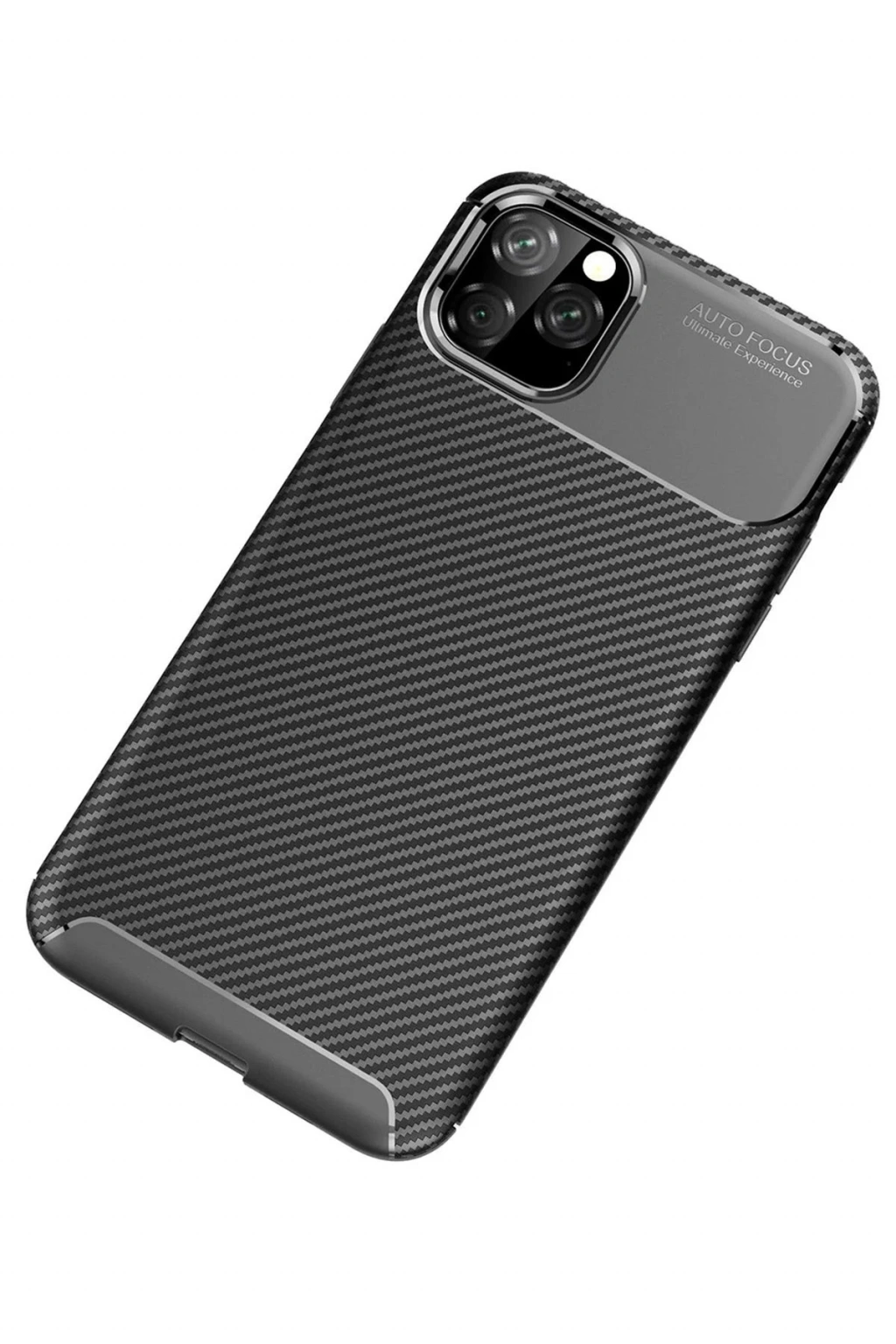 Newface iPhone 11 Pro Max Kılıf Auto Focus Karbon Kapak - Siyah