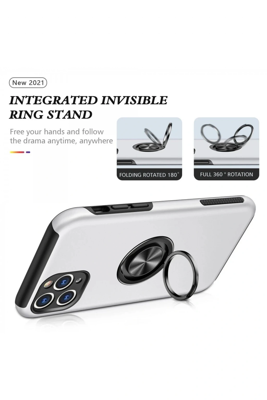 Newface iPhone 11 Pro Max Kılıf Elit Yüzüklü Kapak - Gümüş