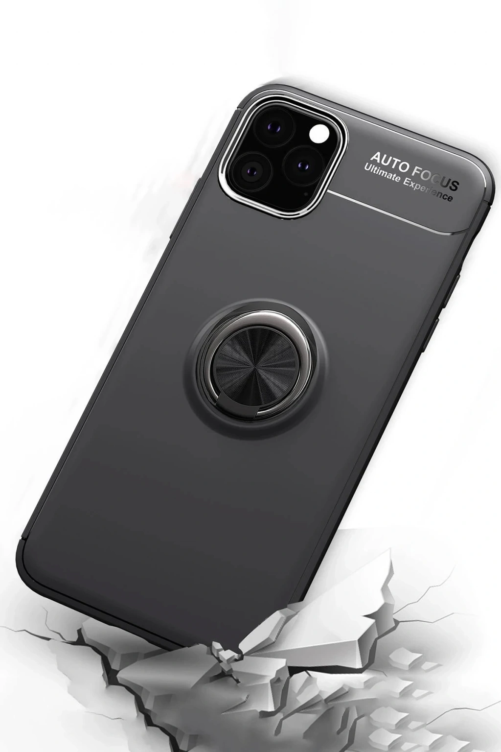Newface iPhone 11 Pro Max Kılıf Range Yüzüklü Silikon - Siyah-Gold