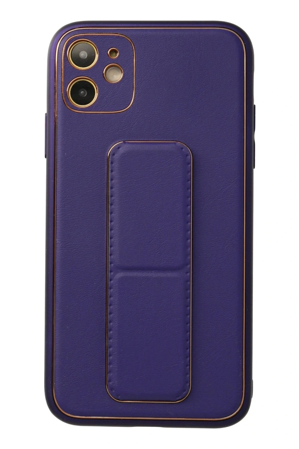 Newface iPhone 12 Kılıf Coco Deri Standlı Kapak - Mor