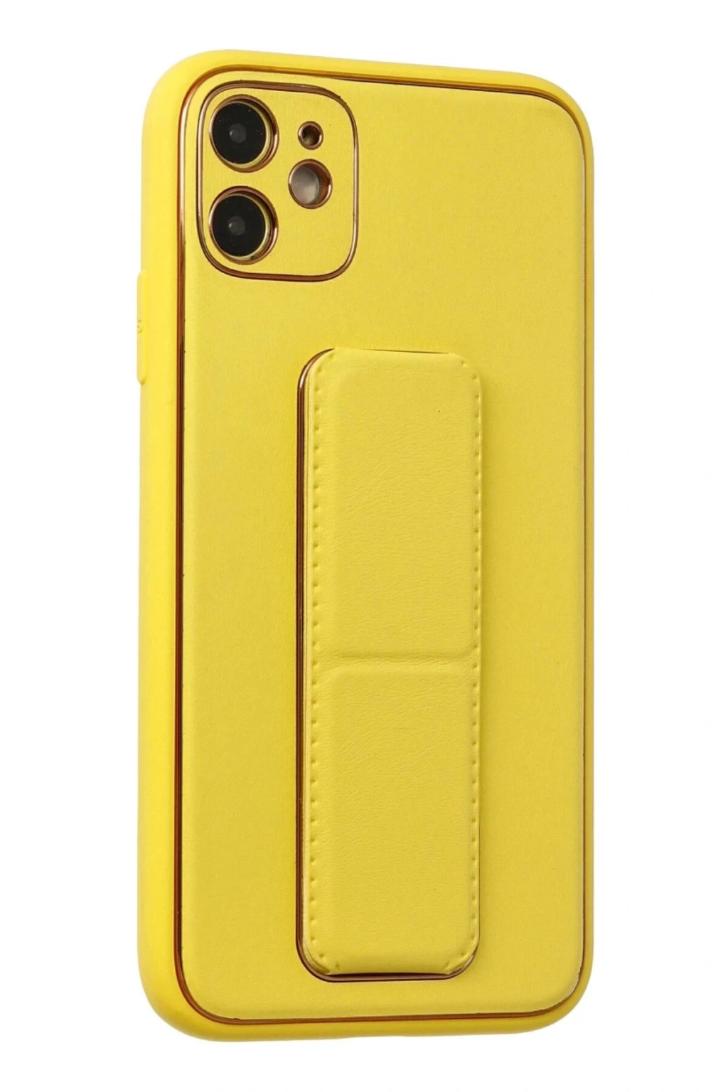 Newface iPhone 12 Kılıf Coco Deri Standlı Kapak - Sarı