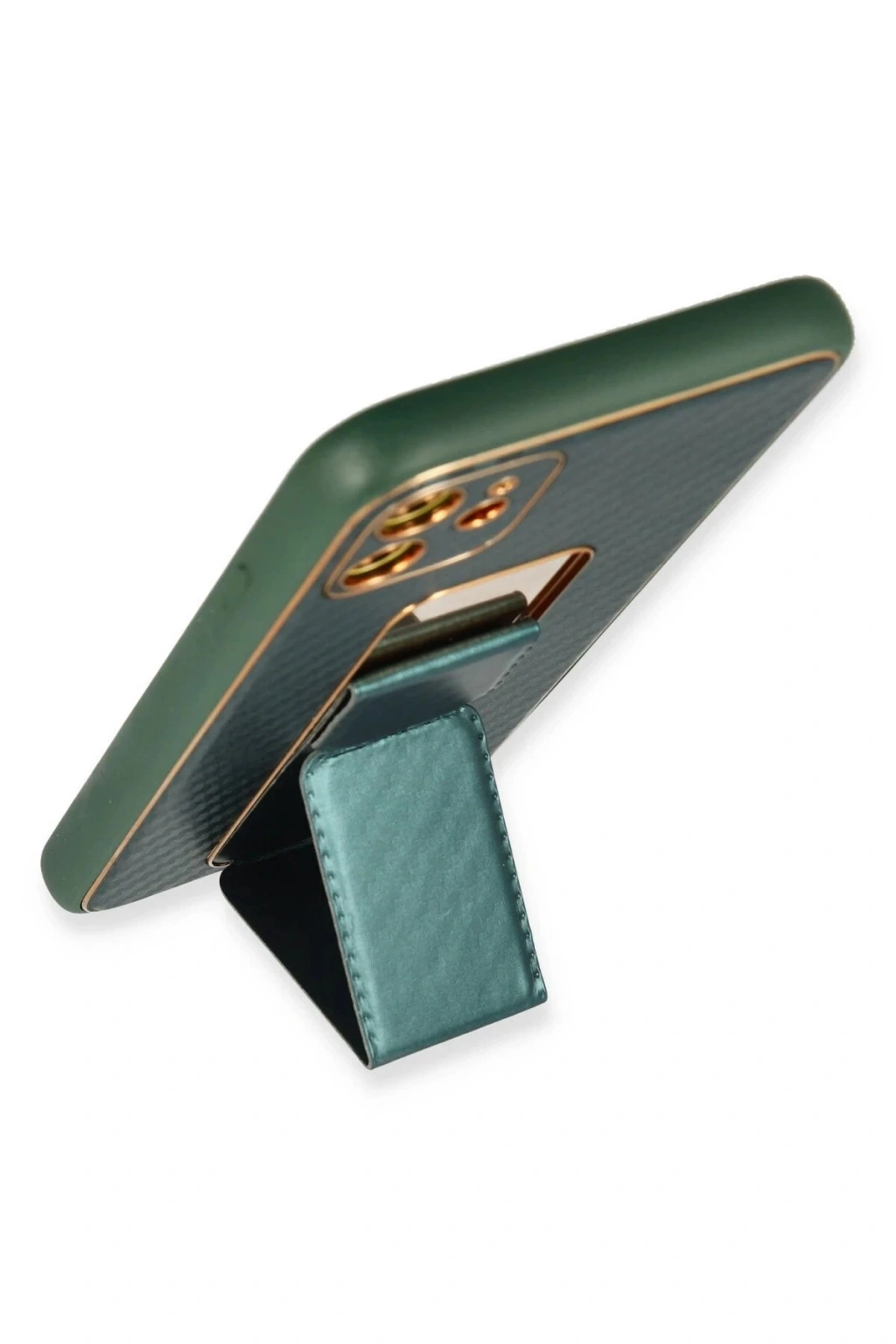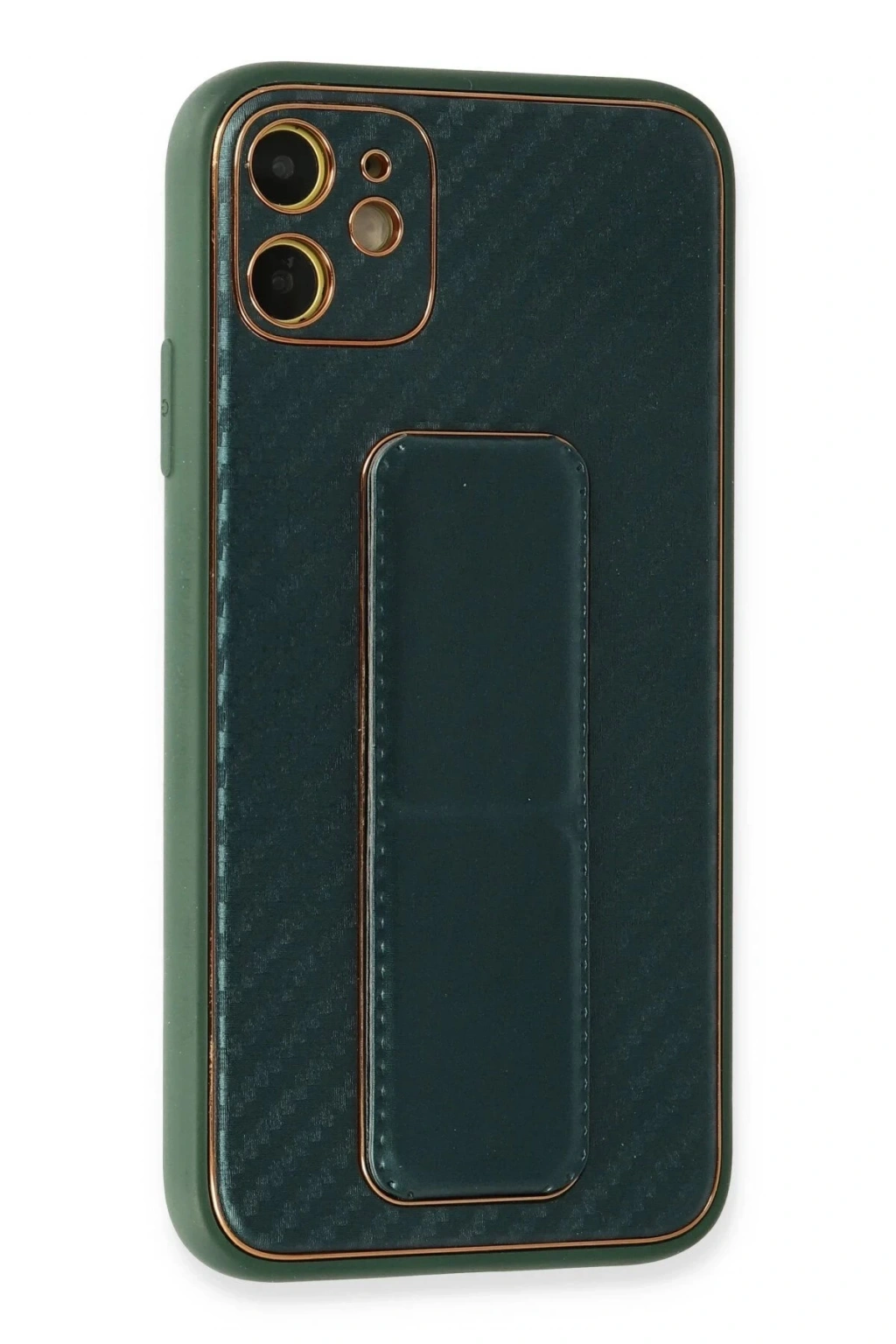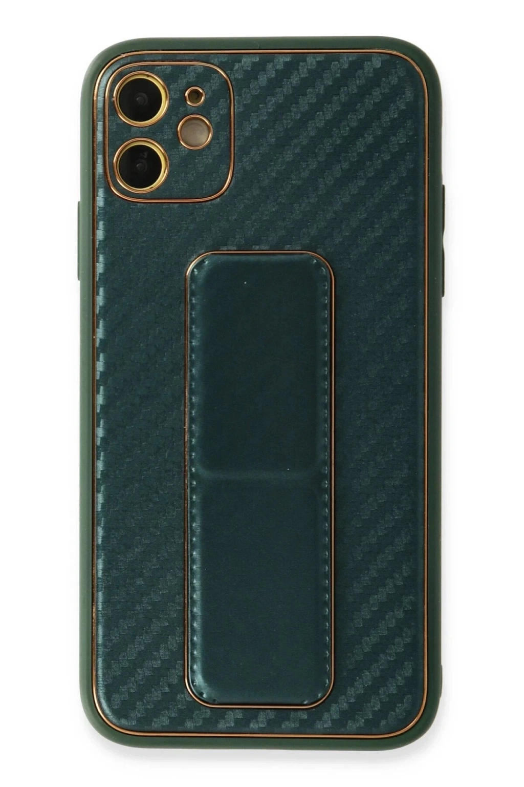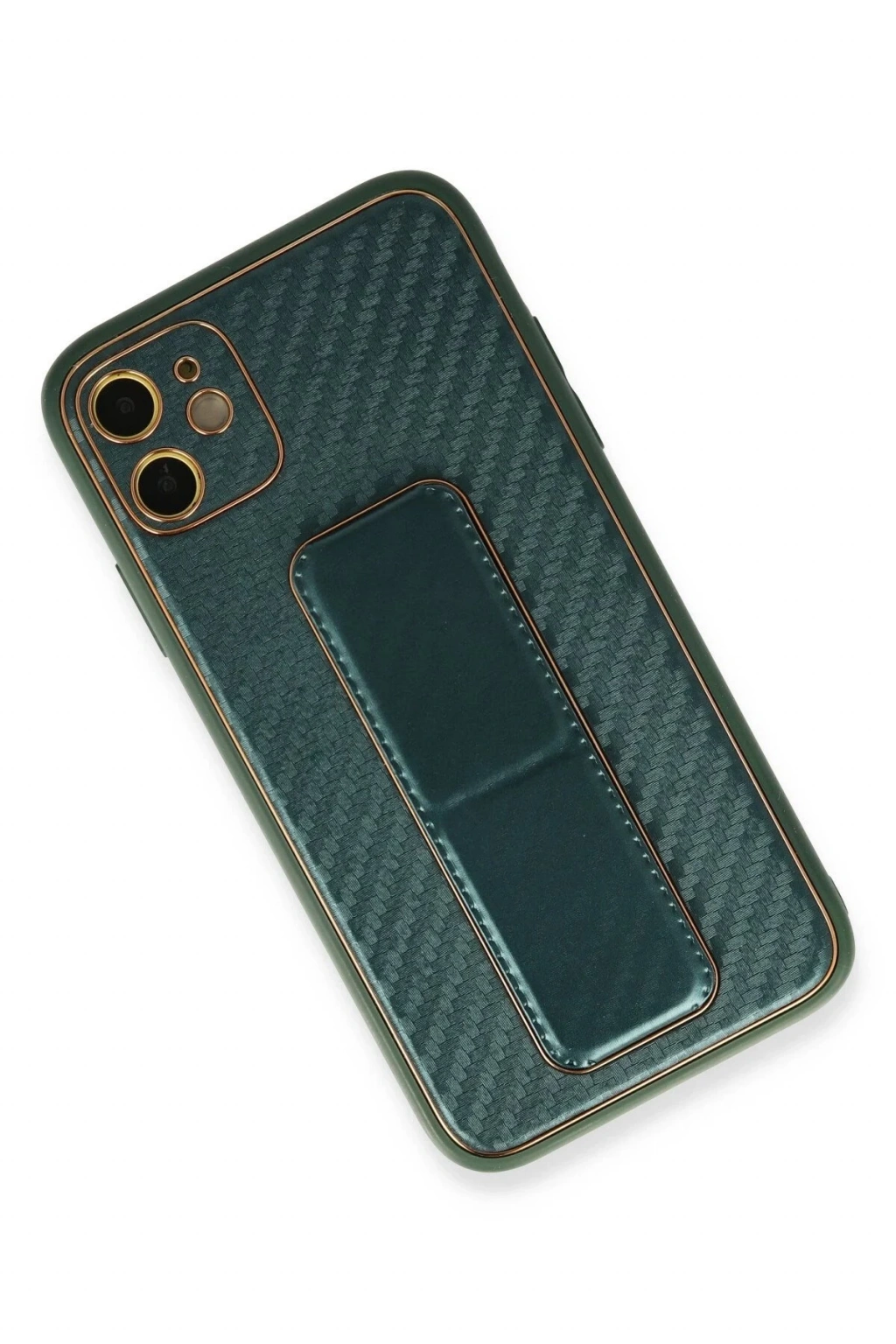 Newface iPhone 12 Kılıf Coco Karbon Standlı Kapak - Yeşil
