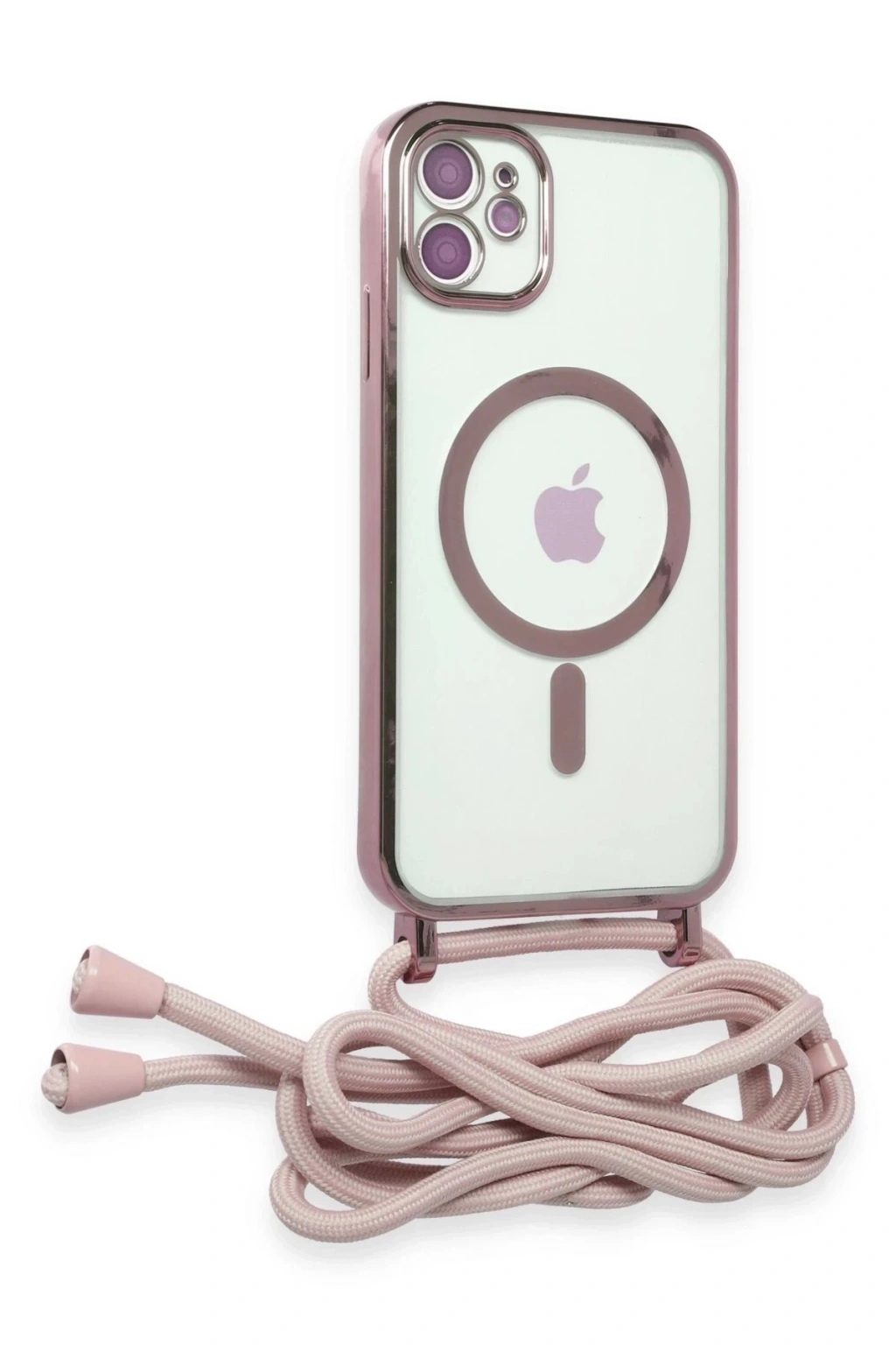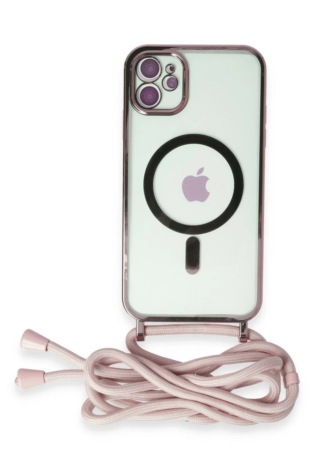 Newface iPhone 12 Kılıf Divo Lazer Askılı Magsafe Kapak - Pembe