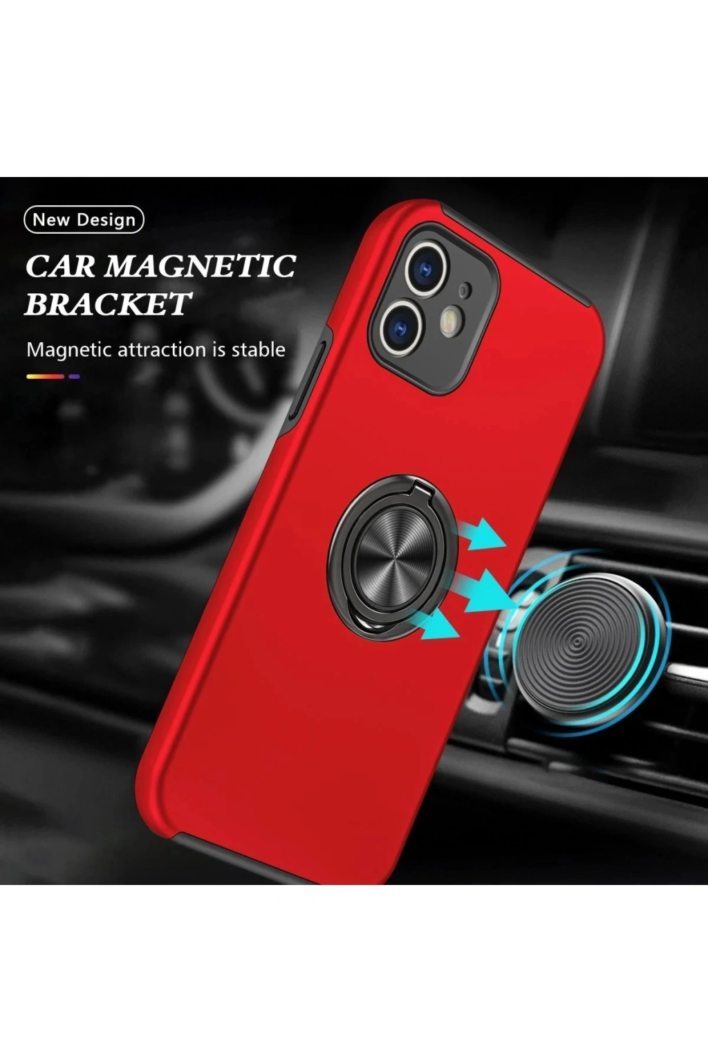 Newface iPhone 12 Kılıf Elit Yüzüklü Kapak - Kırmızı