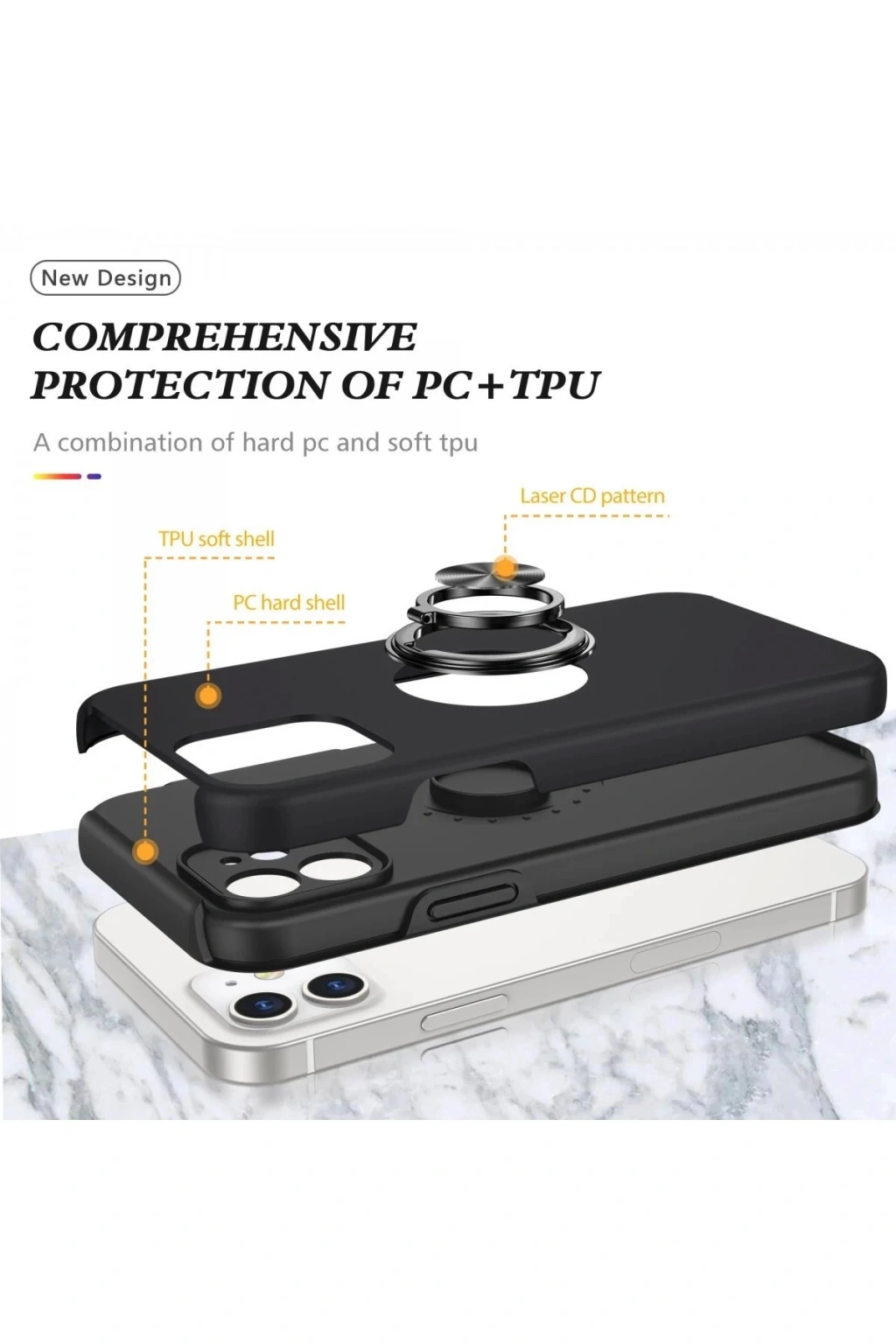 Newface iPhone 12 Mini Kılıf Elit Yüzüklü Kapak - Siyah