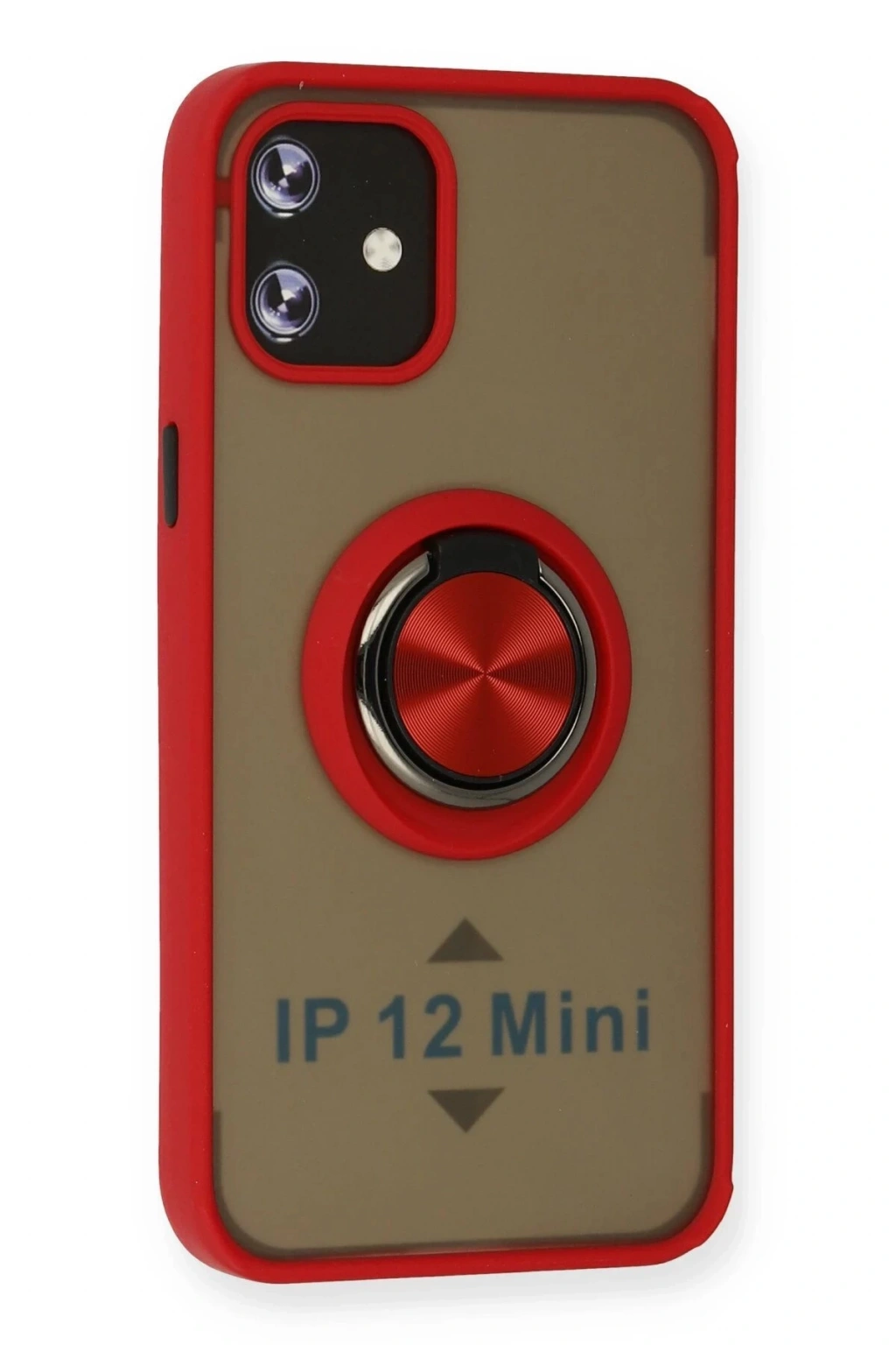Newface iPhone 12 Mini Kılıf Montreal Yüzüklü Silikon Kapak - Kırmızı