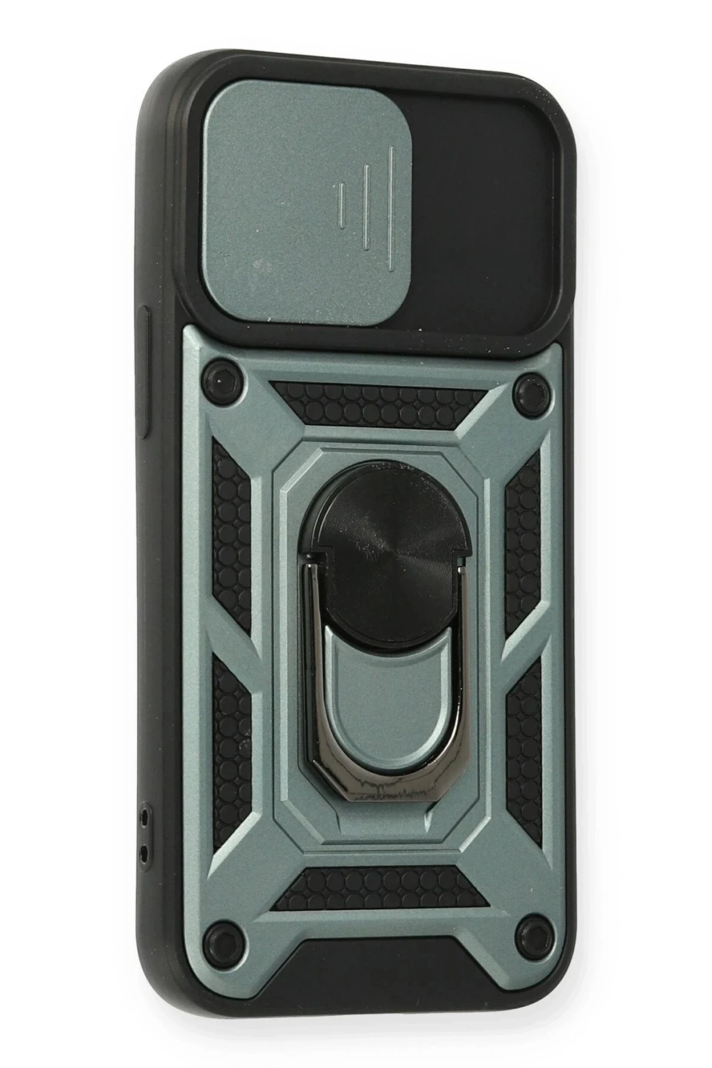 Newface iPhone 12 Mini Kılıf Pars Lens Yüzüklü Silikon - Yeşil