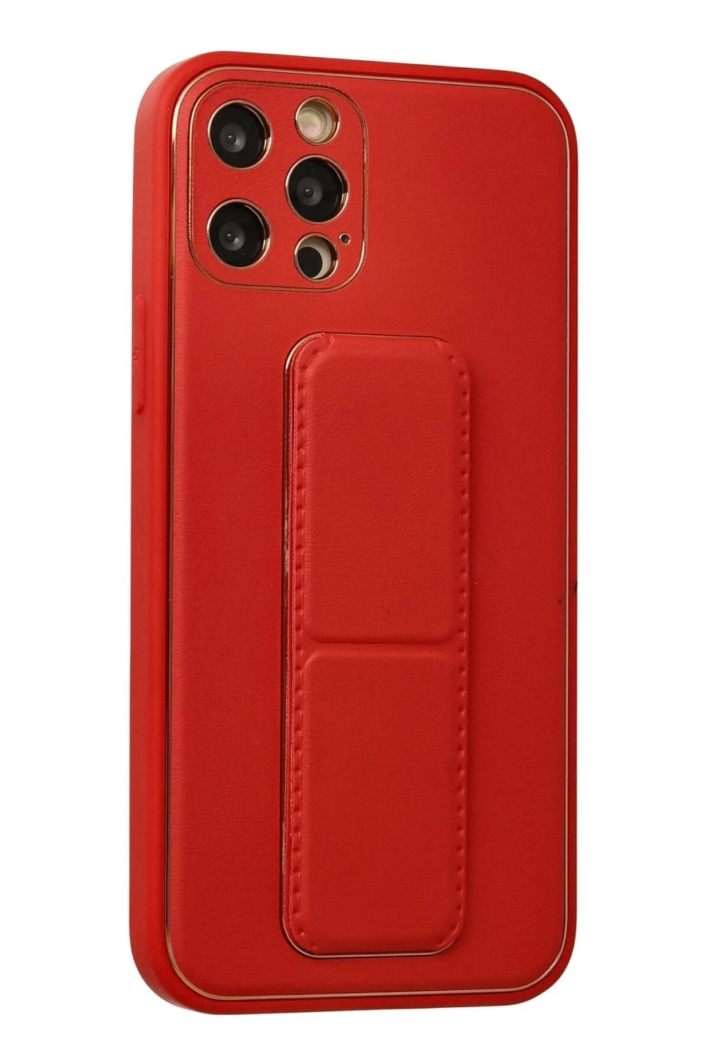 Newface iPhone 12 Pro Kılıf Coco Deri Standlı Kapak - Kırmızı