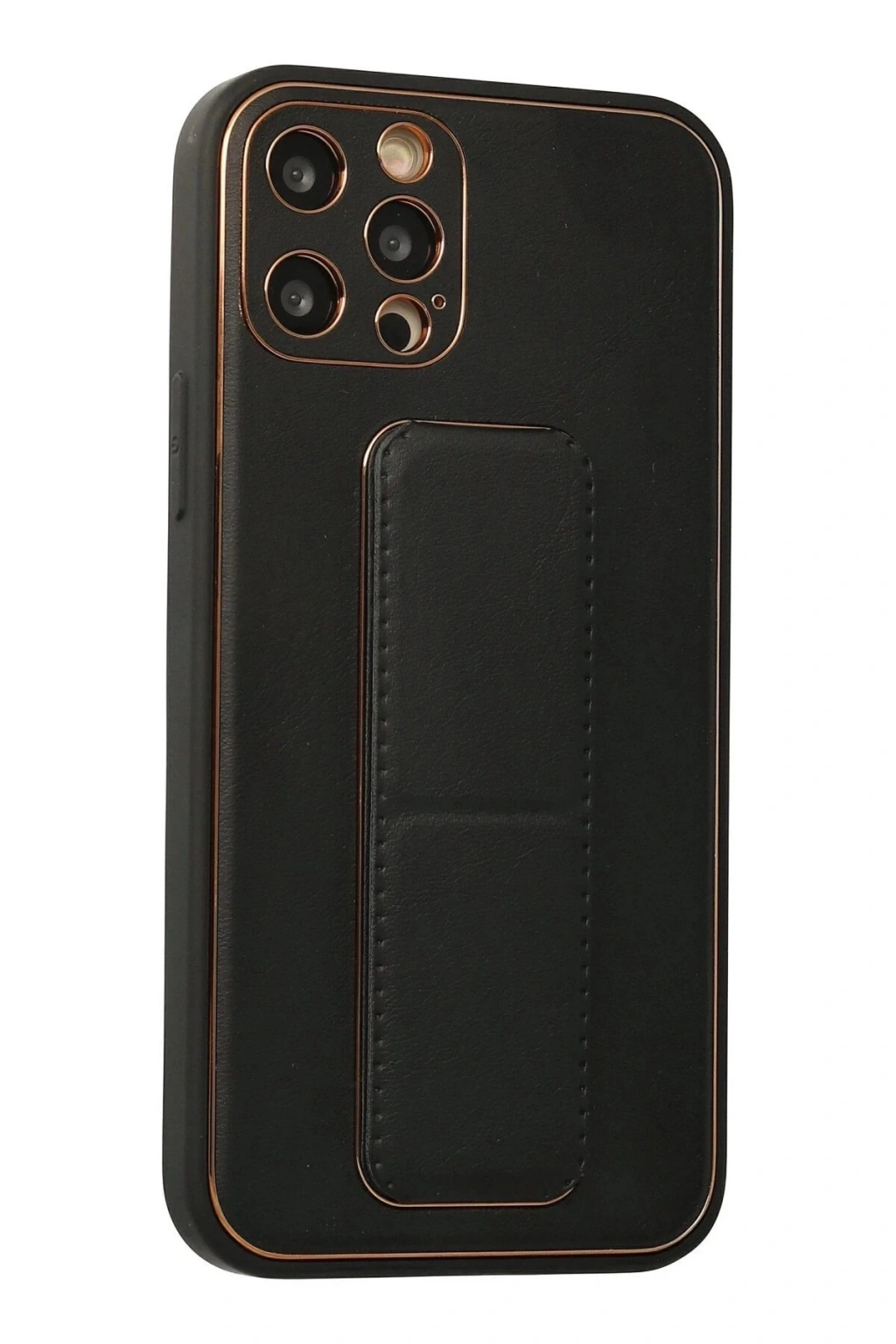 Newface iPhone 12 Pro Kılıf Coco Deri Standlı Kapak - Siyah