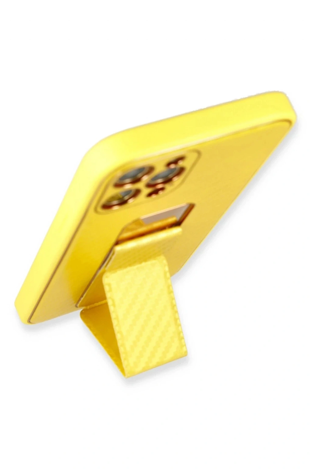Newface iPhone 12 Pro Kılıf Coco Karbon Standlı Kapak - Sarı