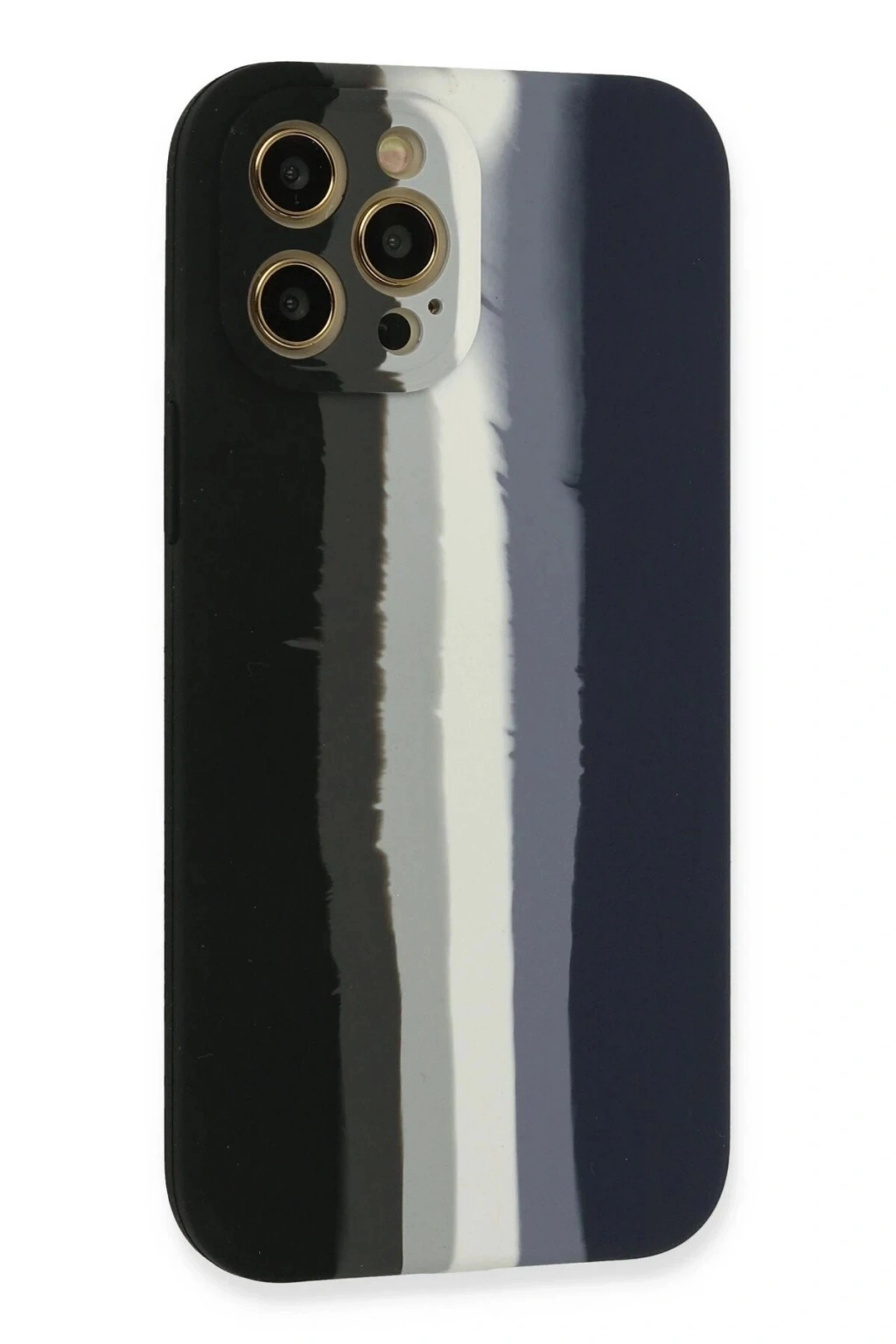 Newface iPhone 12 Pro Kılıf Ebruli Lansman Silikon - Siyah-Lacivert