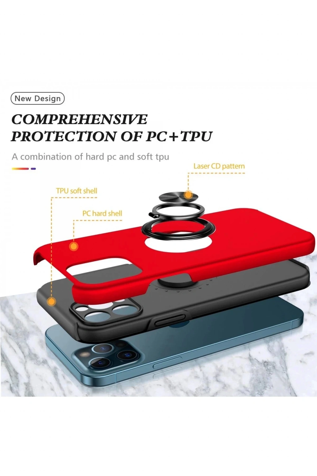 Newface iPhone 12 Pro Kılıf Elit Yüzüklü Kapak - Kırmızı