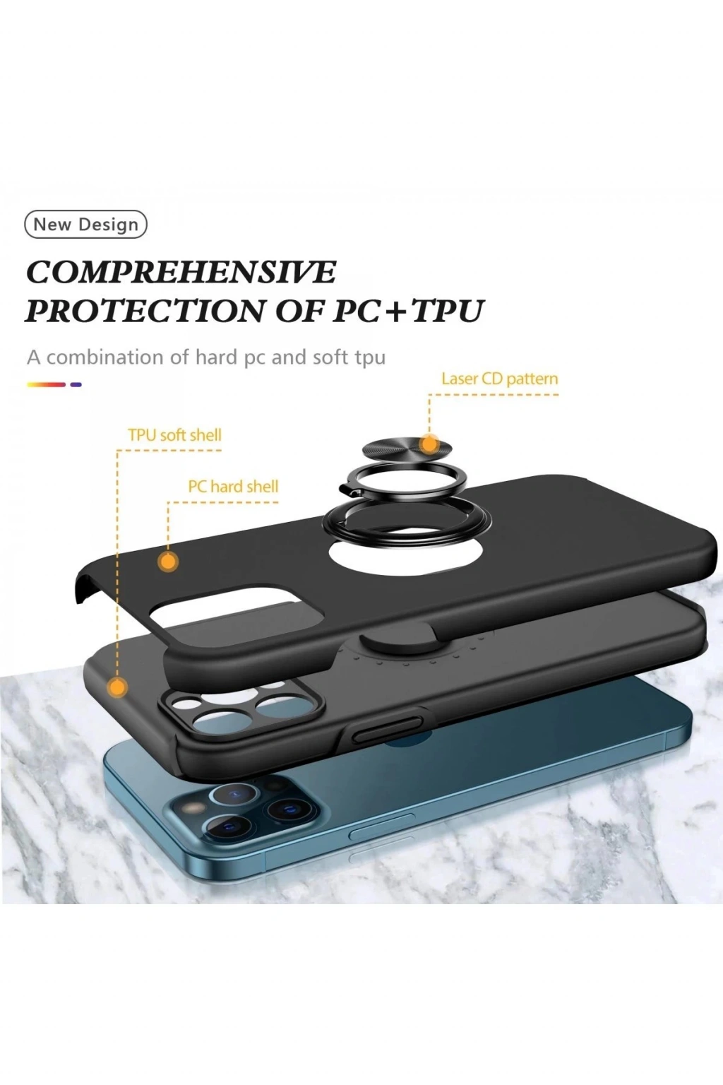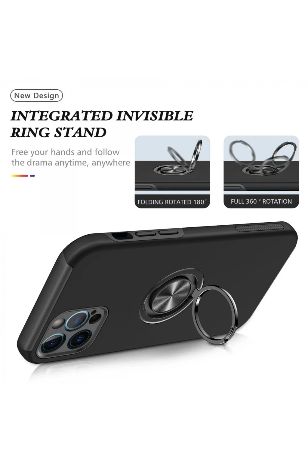 Newface iPhone 12 Pro Kılıf Elit Yüzüklü Kapak - Siyah