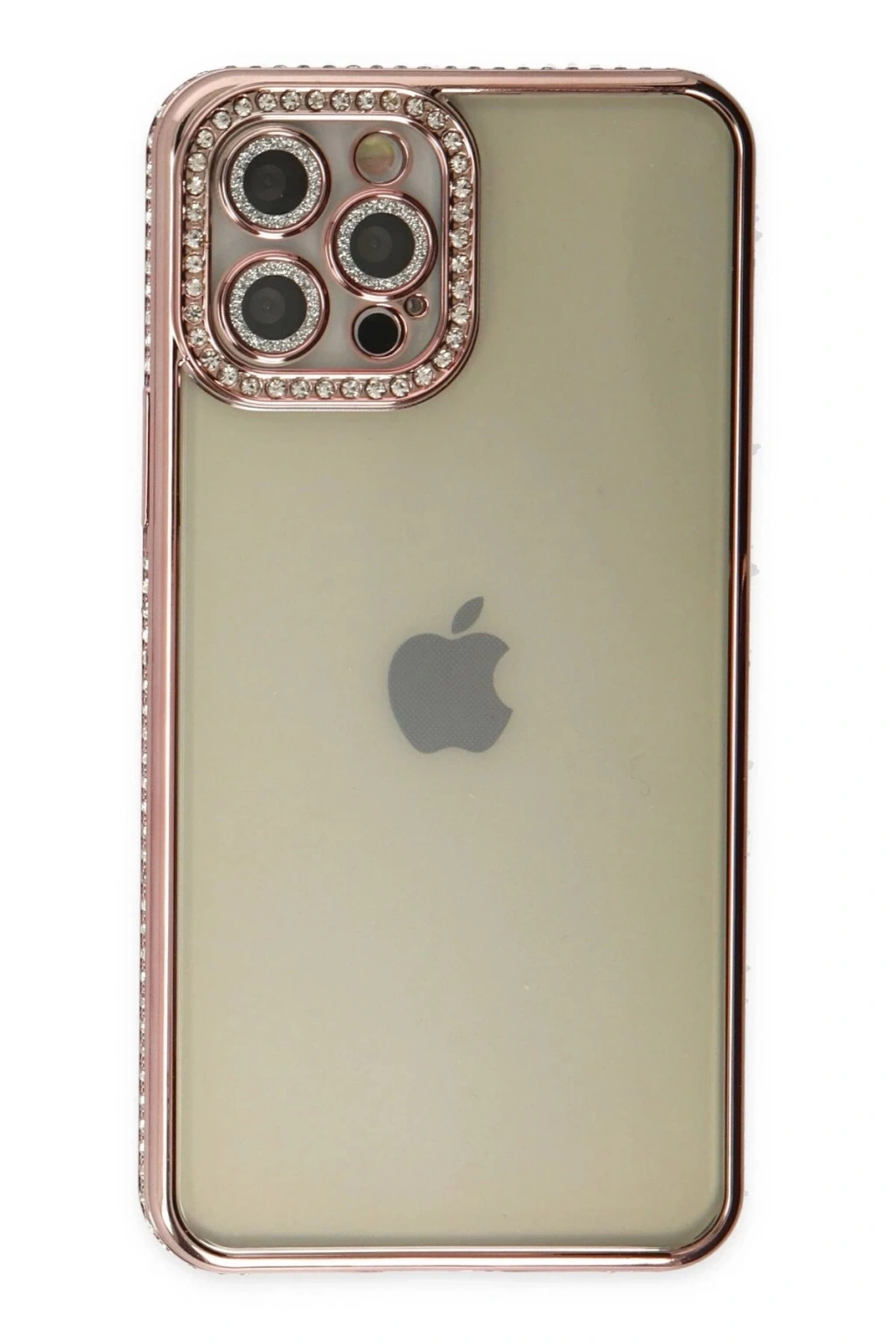 Newface iPhone 12 Pro Kılıf Joke Taşlı Silikon - Pembe