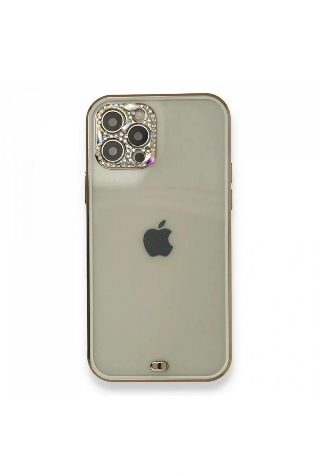 Newface iPhone 12 Pro Kılıf Liva Taşlı Silikon - Beyaz