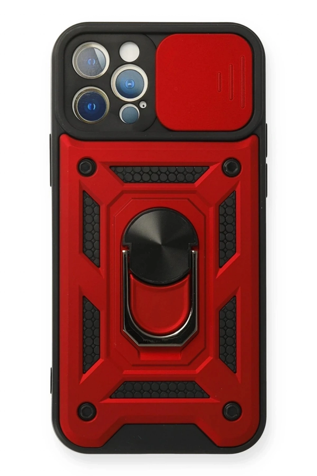 Newface iPhone 12 Pro Kılıf Pars Lens Yüzüklü Silikon - Kırmızı