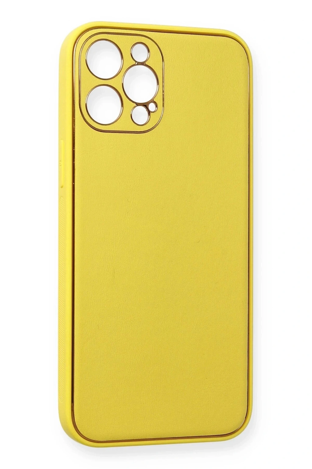 Newface iPhone 12 Pro Max Kılıf Coco Deri Silikon Kapak - Sarı