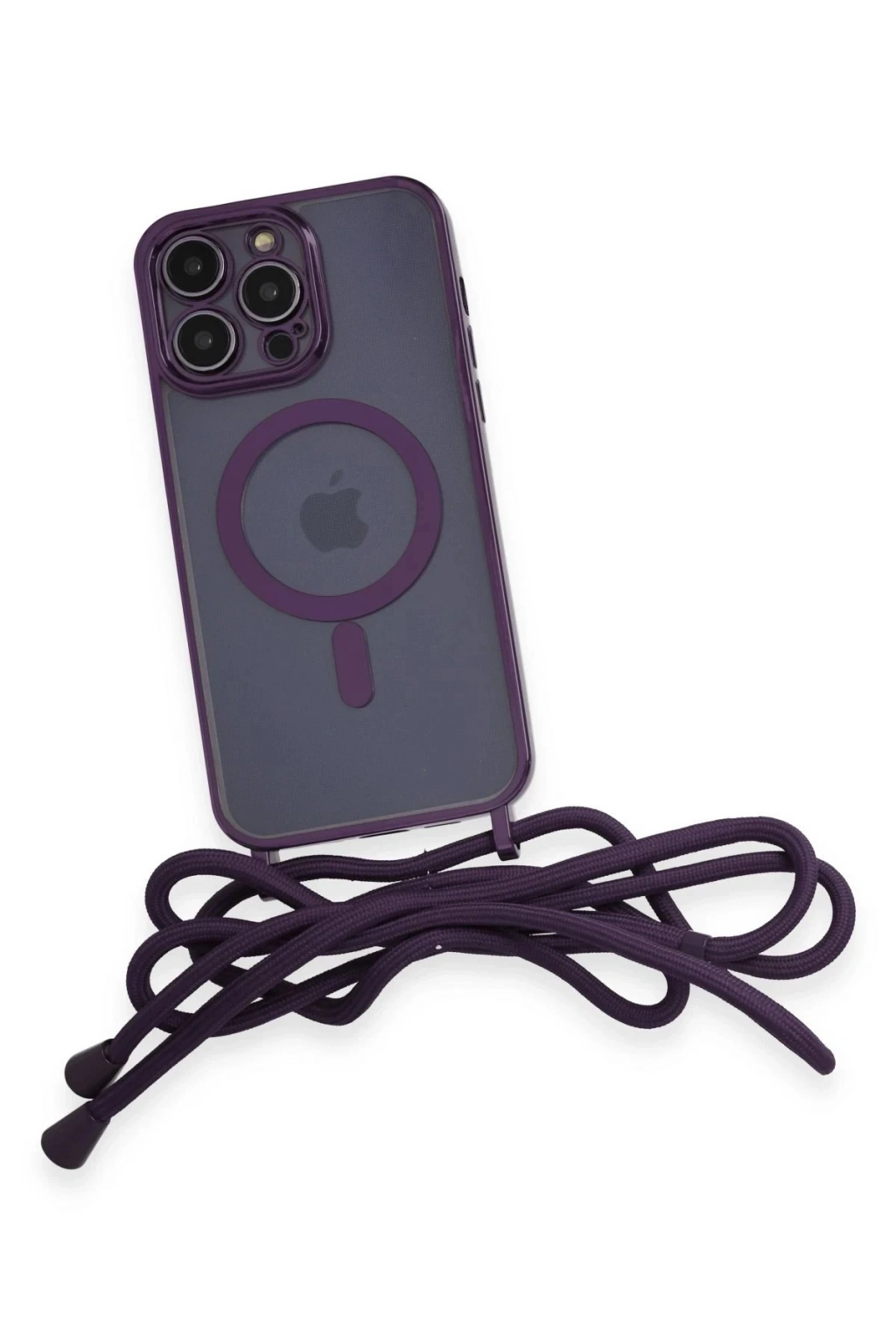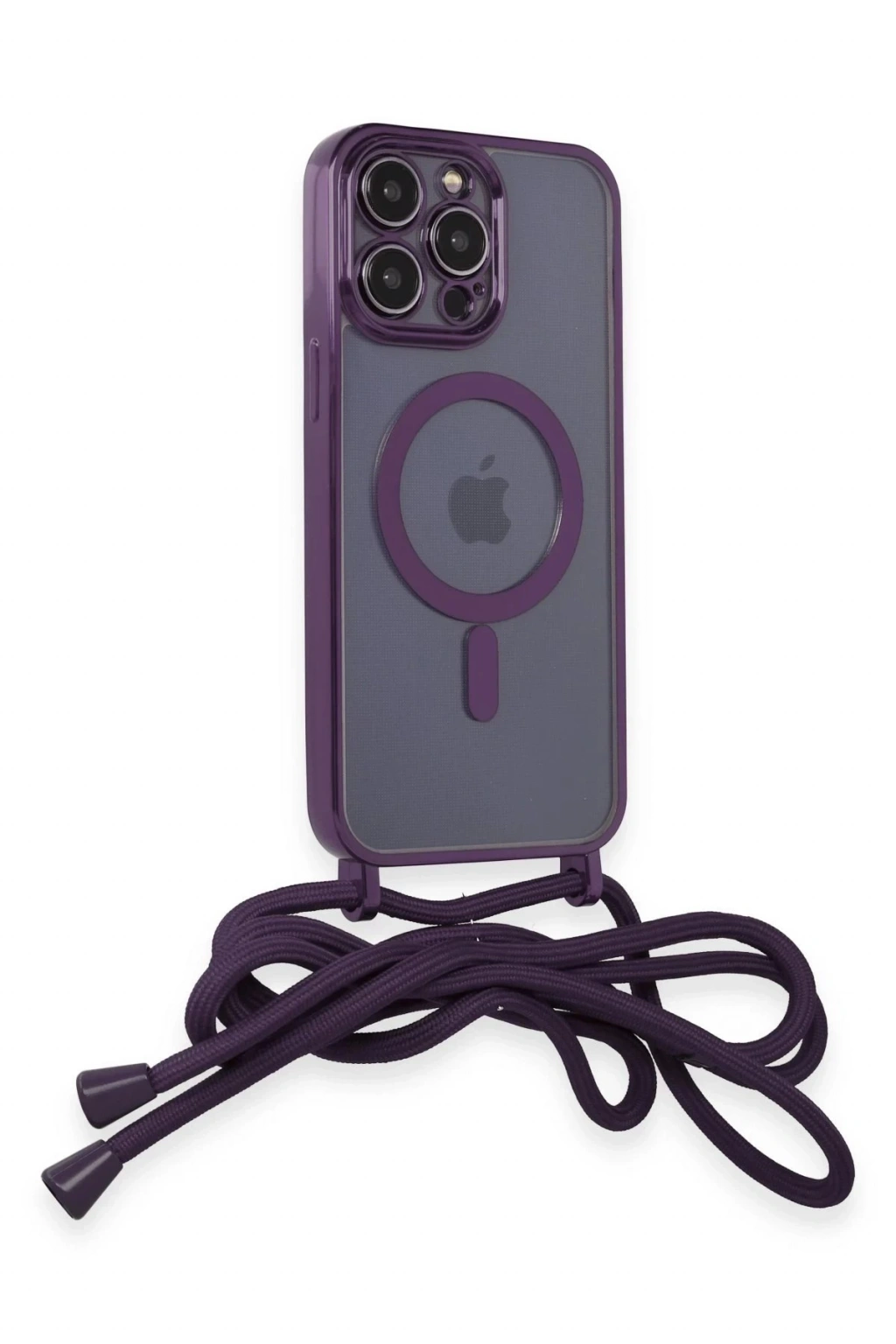 Newface iPhone 12 Pro Max Kılıf Divo Lazer Askılı Magsafe Kapak - Derin Mor