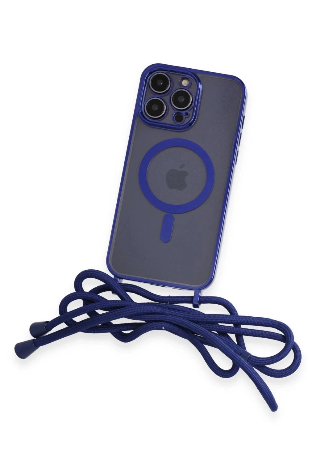 Newface iPhone 12 Pro Max Kılıf Divo Lazer Askılı Magsafe Kapak - Mavi