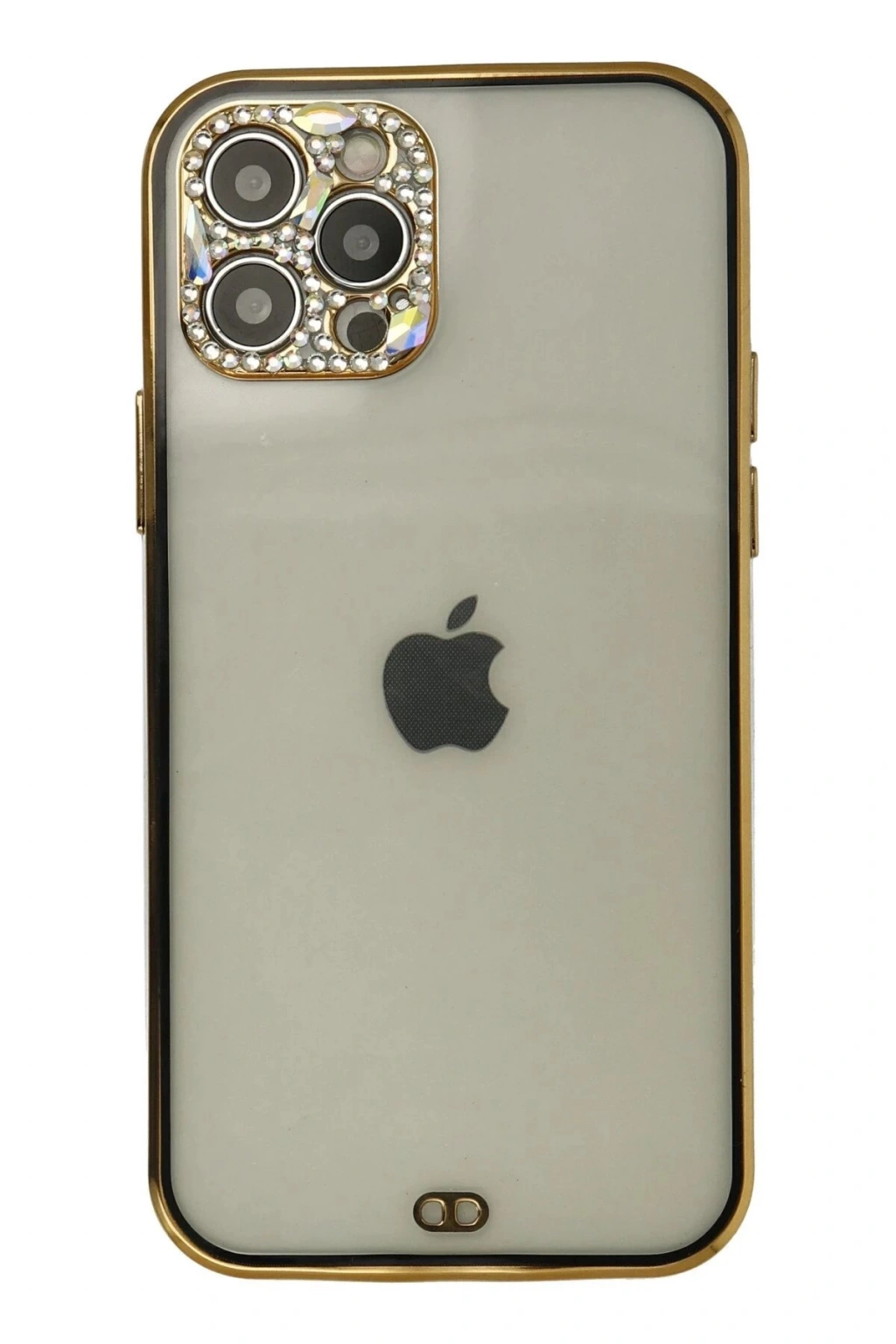 Newface iPhone 12 Pro Max Kılıf Liva Taşlı Silikon - Siyah